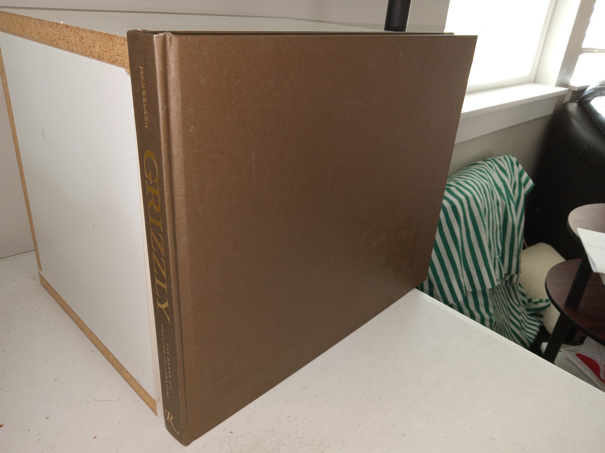 Fair-good condition, large, oblong, brown hardcover with no dust jacket. The cover has scuffing, some fraying at the corners, and some dents. The front flyleaf has writing in pencil. Text and illustrations throughout are clean, clear, and legible.