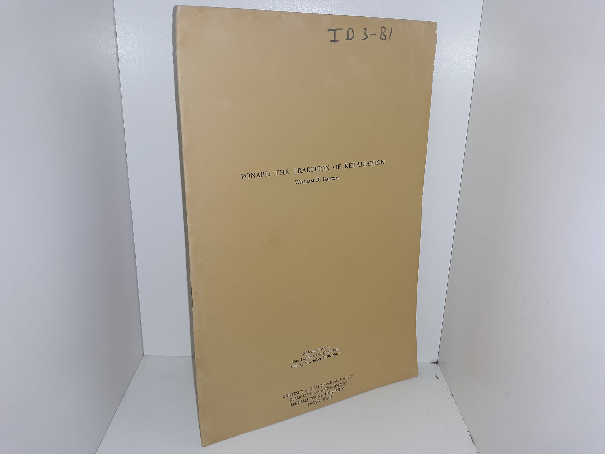 Fair condition, thin, staple-bound, tan, softcover booklet. The booklet has some creasing. The cover has some tears on the spine, a stamp, writing in marker, some small pieces torn off the edges, some tears, and some creasing. The title page has writing in pencil. Text throughout is clean, clear, and legible.