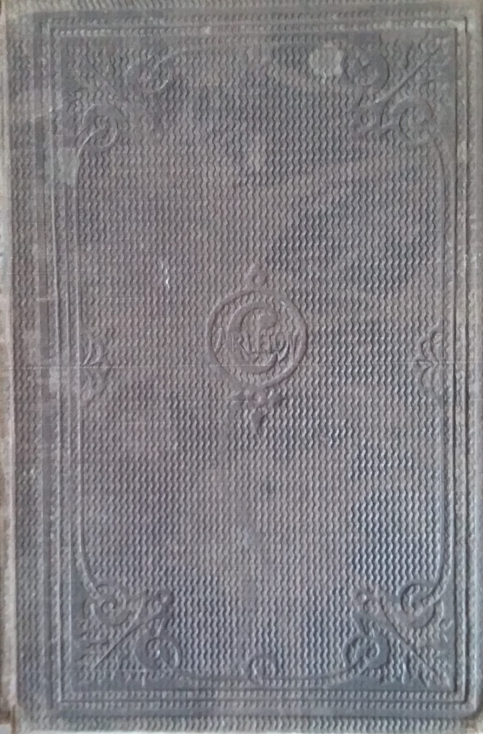 Brown hardcover with faded gold lettering on the side. Major shelf wear with large scuffs and stains on both covers. Fraying on the spine. White flecks on the back cover. Pencil markings on the flyleaf, and some sections of the text have pencil markings, but otherwise the text is still clear, and legible. The inner front and back covers have been torn and have large tears and folds along the spine. In fair condition.