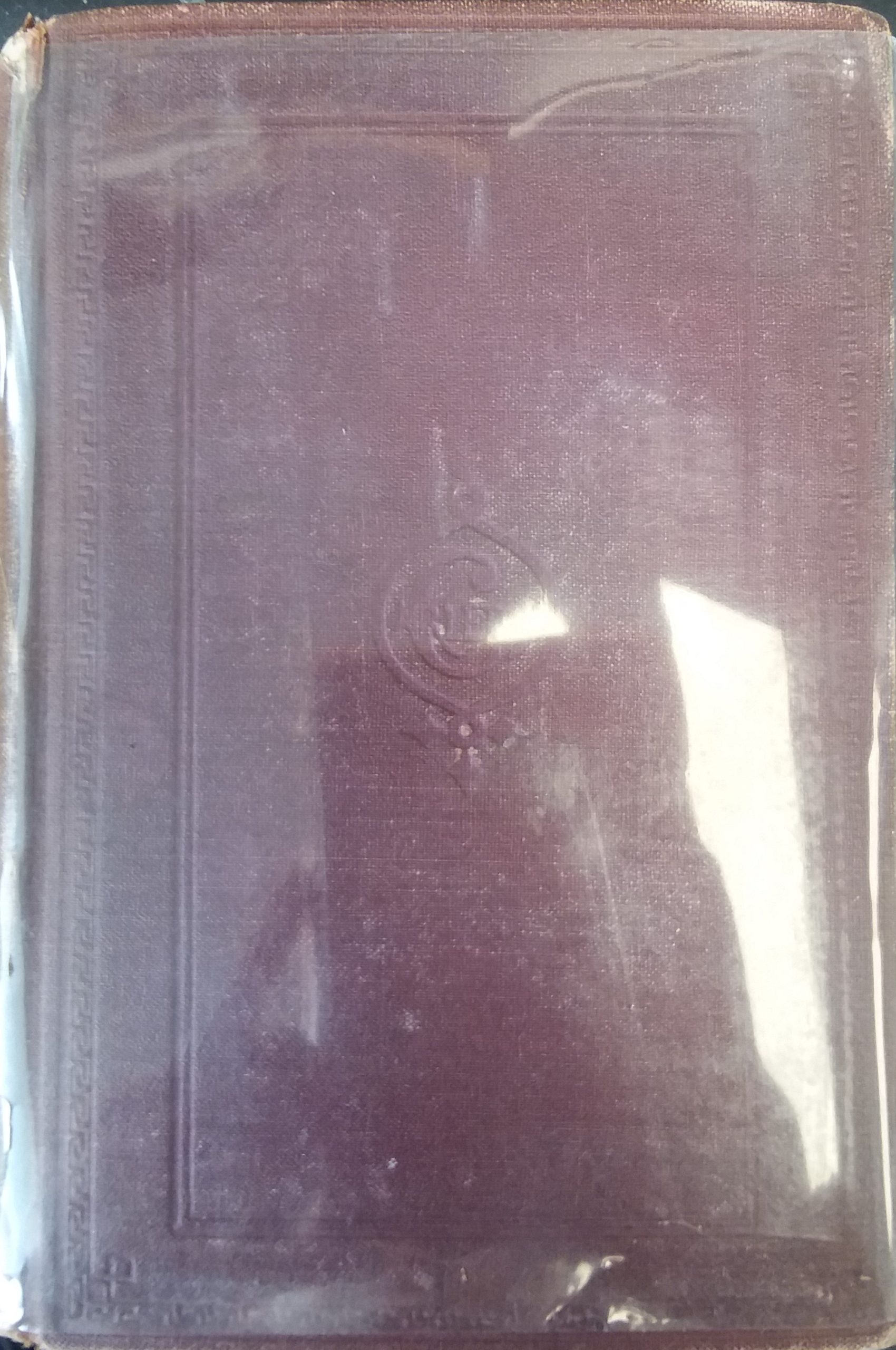 Red hardcover with veloe. Some shelf wear and scuffs and tears on the spine. The veloe is torn and falling off. The pencil markings on the flyleaf and the title page, but otherwise the text throughout is clean, clear, and legible. Some water damage on some of the pages. In fair condition.