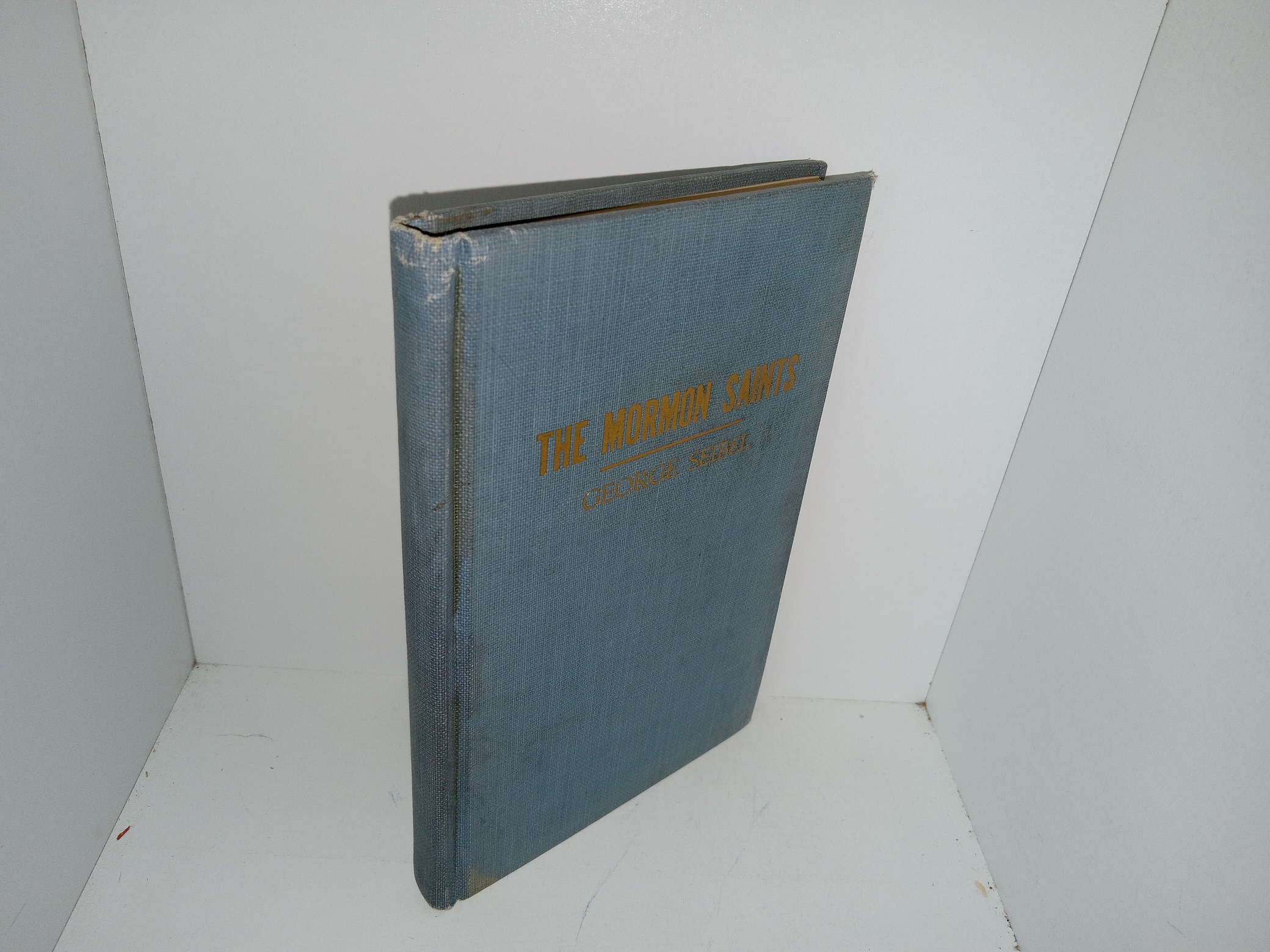 Fair condition, small, pale blue hardcover with no dust jacket. The cover has stains, scuffing, discoloration, fading, some dents, and some residue. the internal binding has some tears. The inside covers and flyleaves have yellowing. The front flyleaf has writing in pencil and eraser marks. Text throughout is clear and legible.