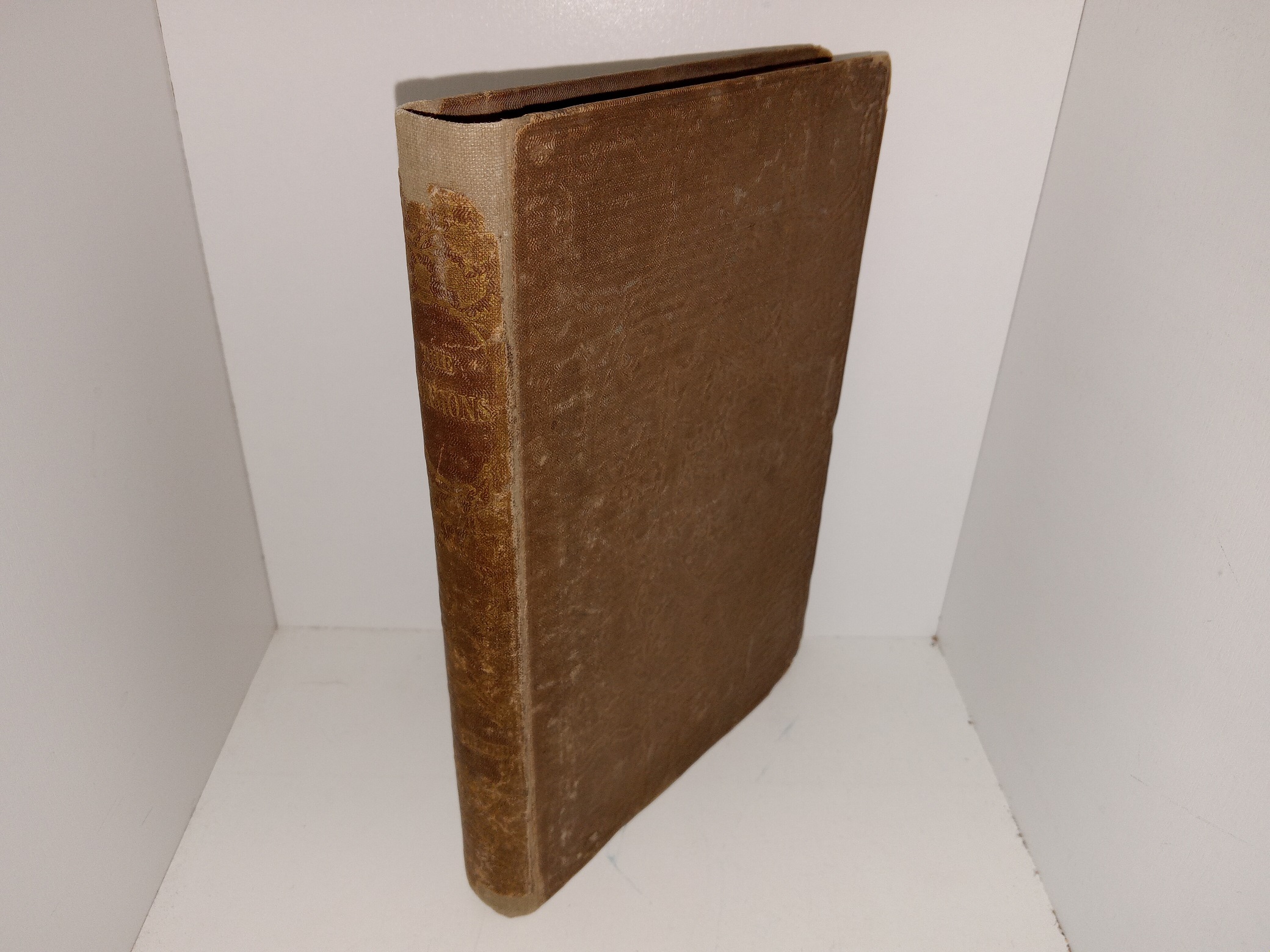 Fair condition, brown hardcover with no dust jacket. The cover has some scuffing, some tears, small pieces torn off, fading, fraying, and bent corners. Some pages have stains. The inside covers have some small tears. The inside covers and flyleaves have some writing in pencil, and eraser marks.