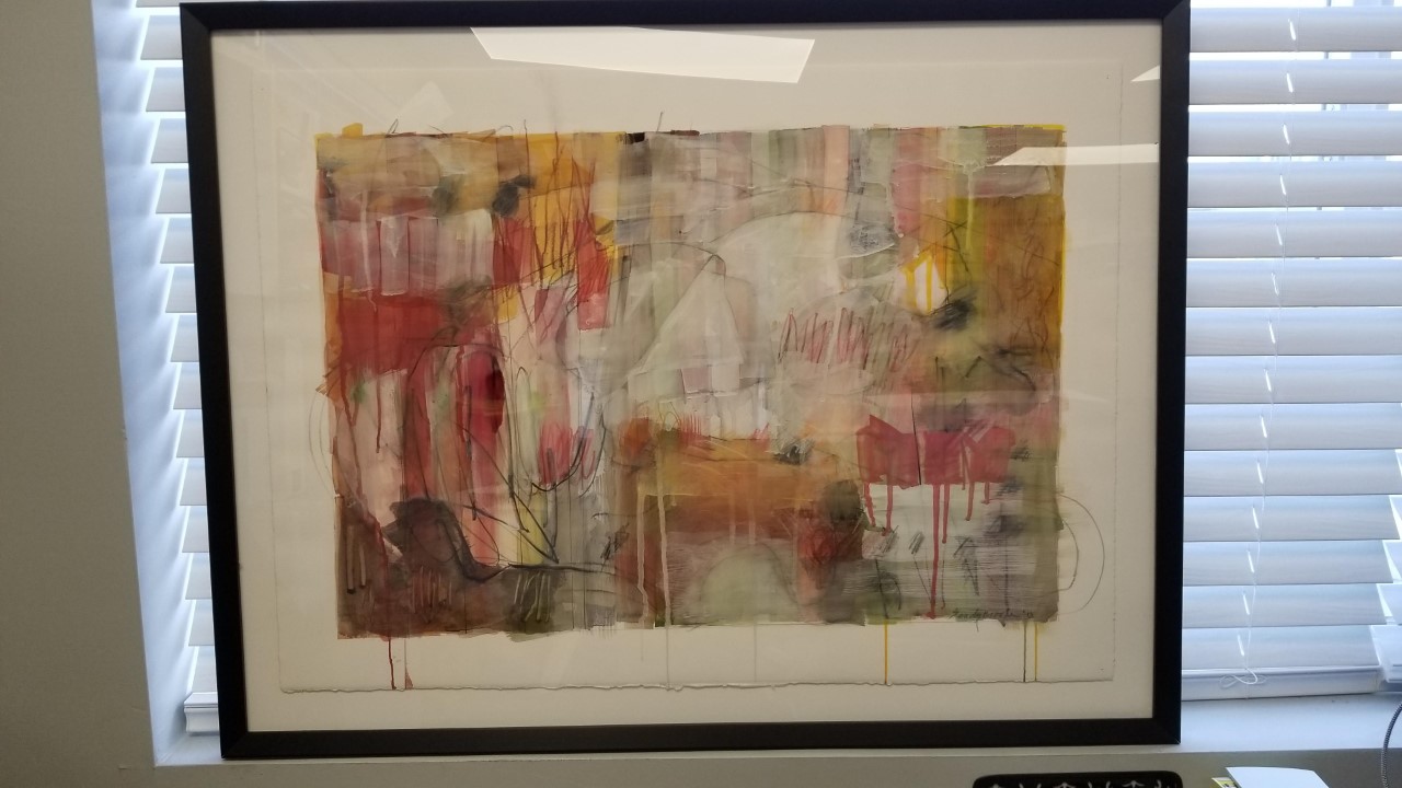 Nicely framed with a note on the back, and another short note written by the artist taped to the back.