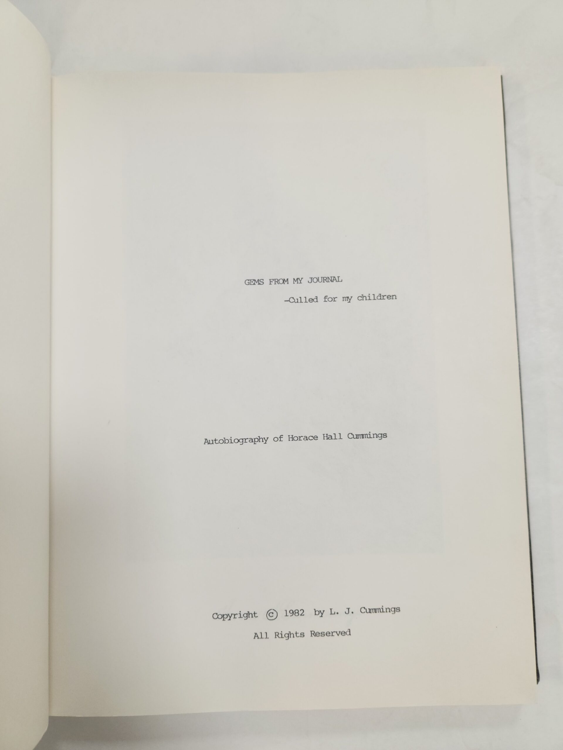 Gems From My Journal:: Culled for my children, Autobiography of Horace Hall Cummings (1982, Hardcover, Faux Leather)