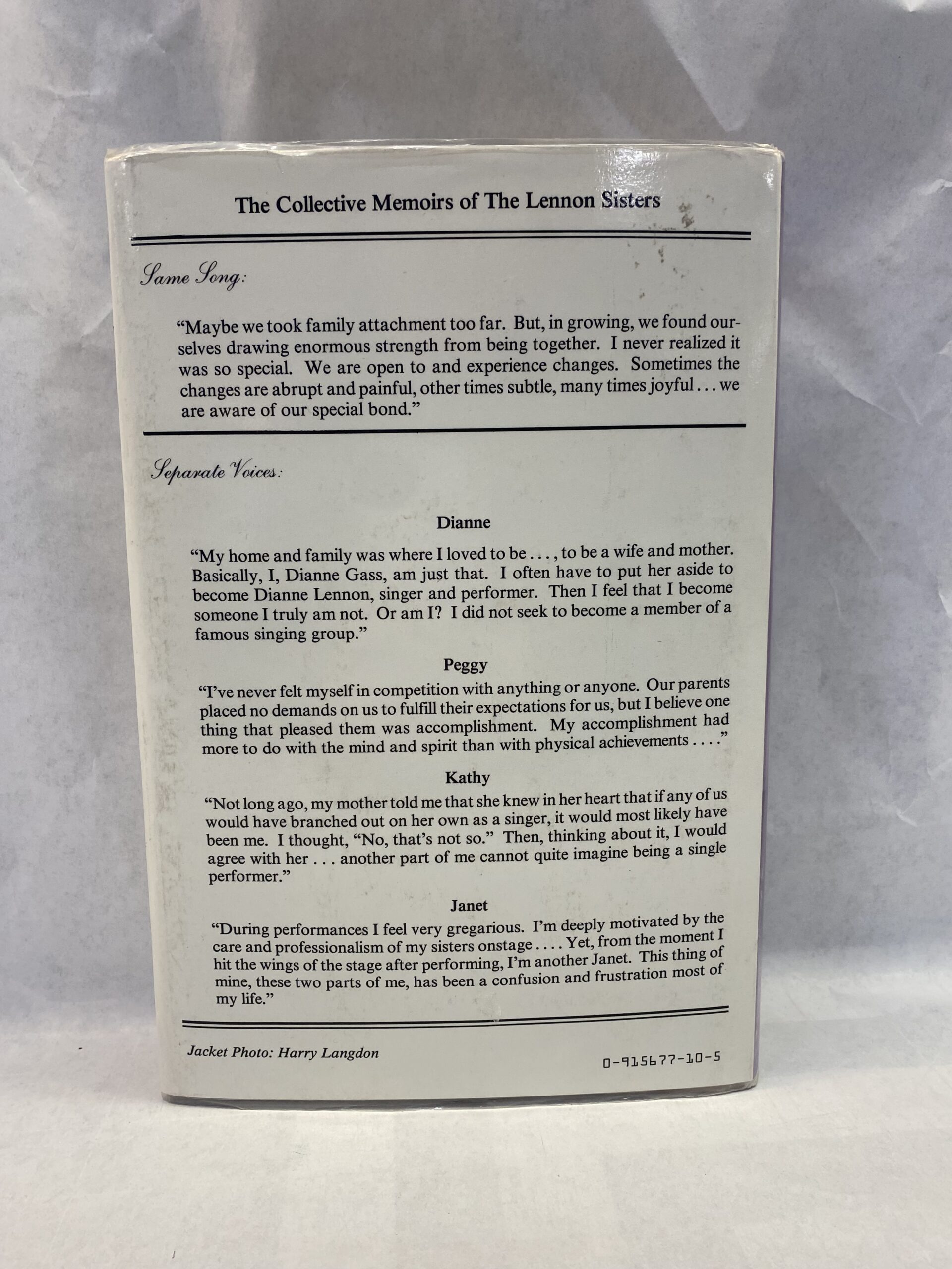 Same Song – Separate Voices by Dianne, Peggy, Kathy, and Janet Lennon. Hardcover with dust jacket, 1985.