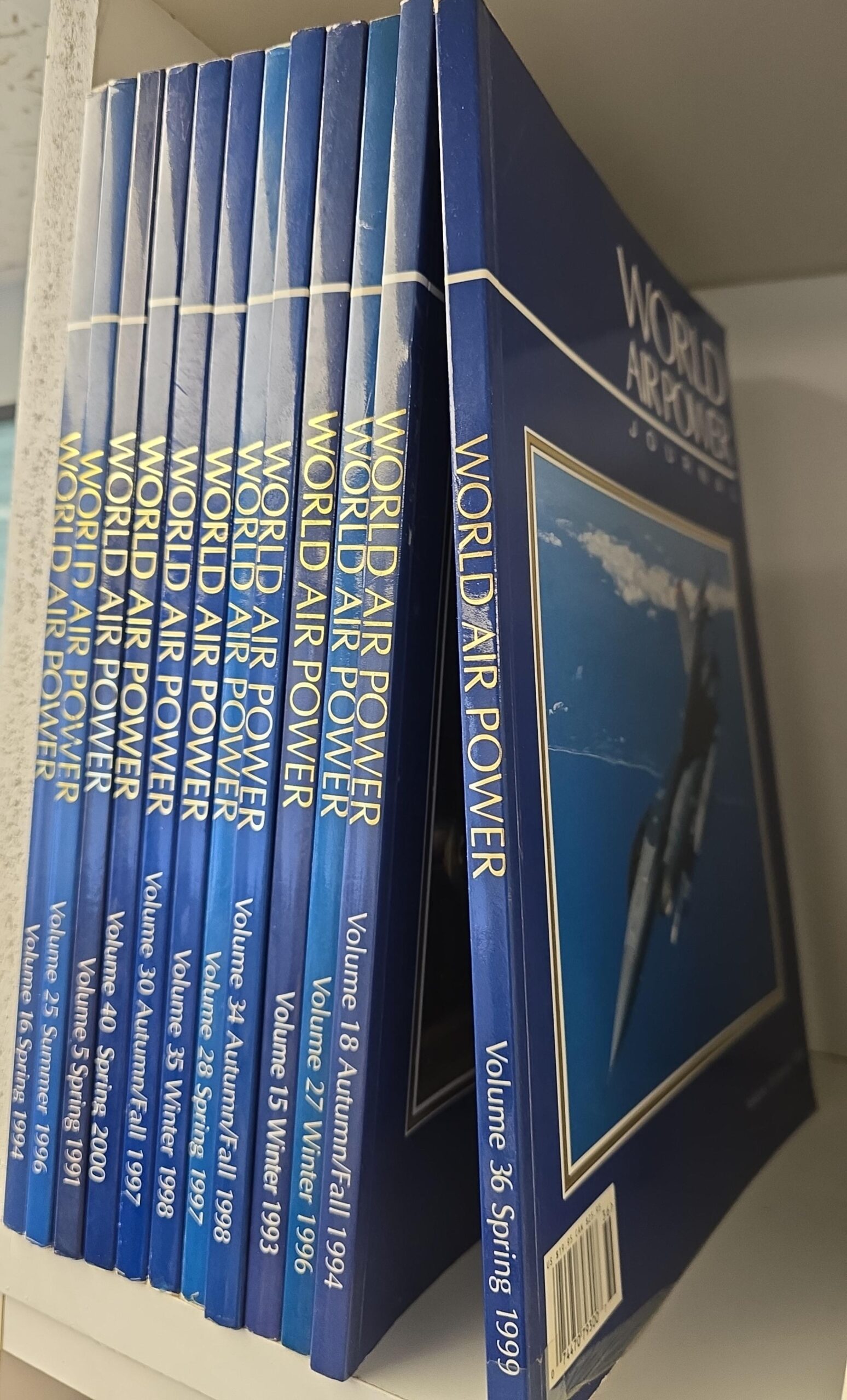 This stack of softcovers; 12 issues of World Air Power Journal. All in very good condition. Together they weigh over 17 pounds so they will be expensive to ship. You definitely save on shipping.