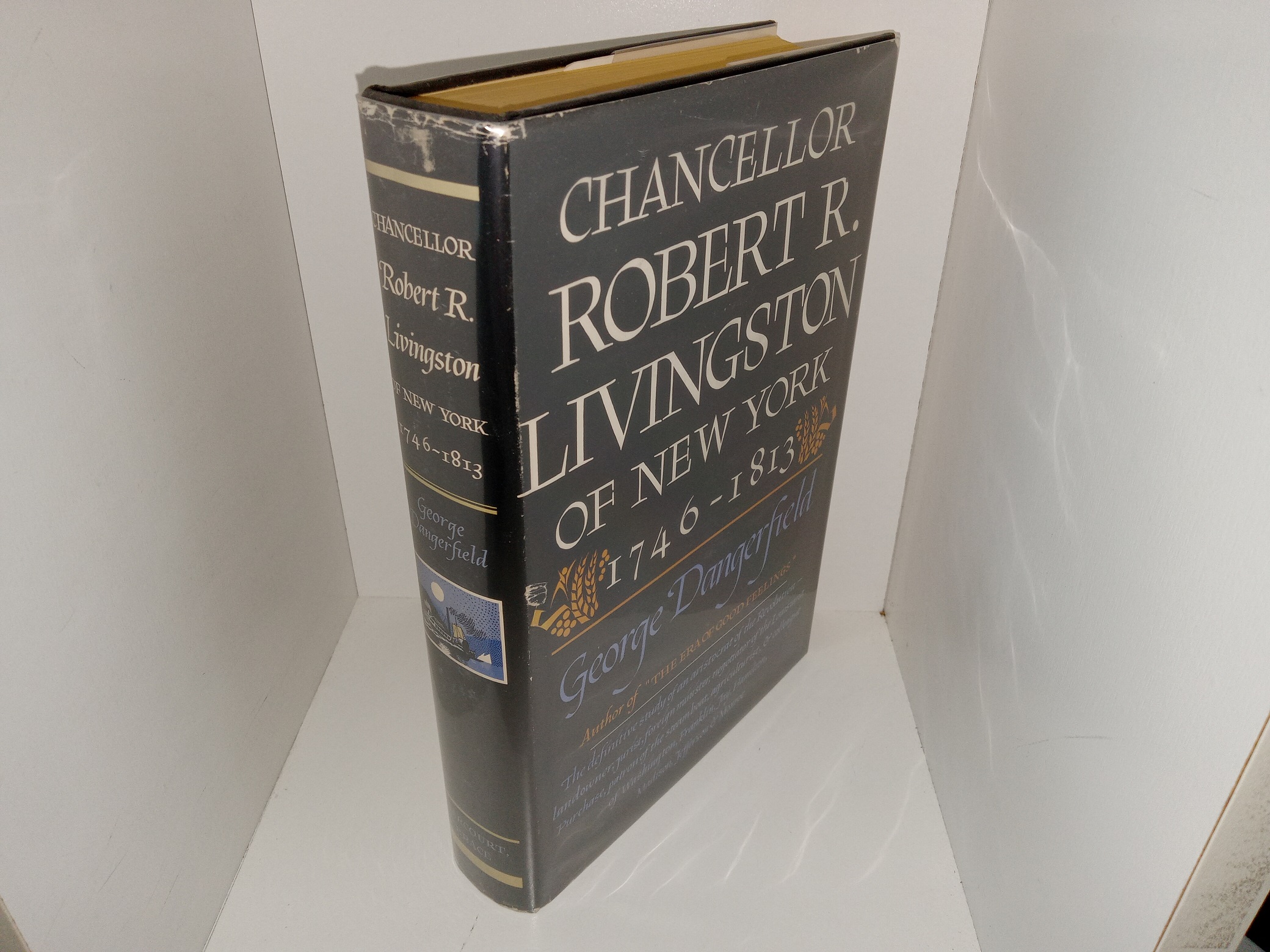 Good condition hardcover with a fair condition, dark gray dust jacket and a mylar cover. The dust jacket has scuffing, some tears, scratches, and some stains on the back. The top corner of the front flap of the dust jacket has been cut off. The front flyleaf has writing in pencil. Text throughout is clean, clear, and legible.