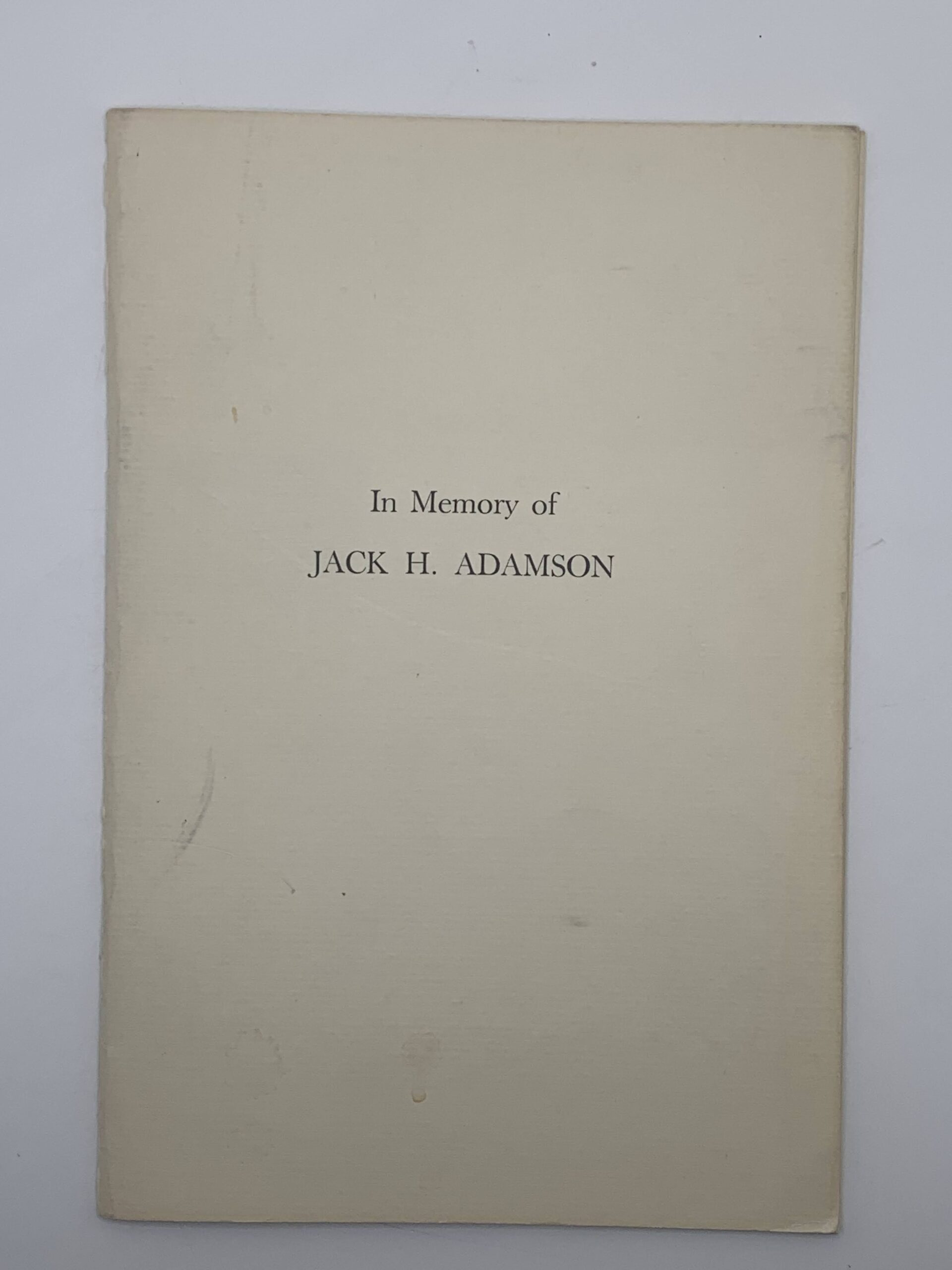 In Memory of Jack H. Adamson (Memorial service program 1975)