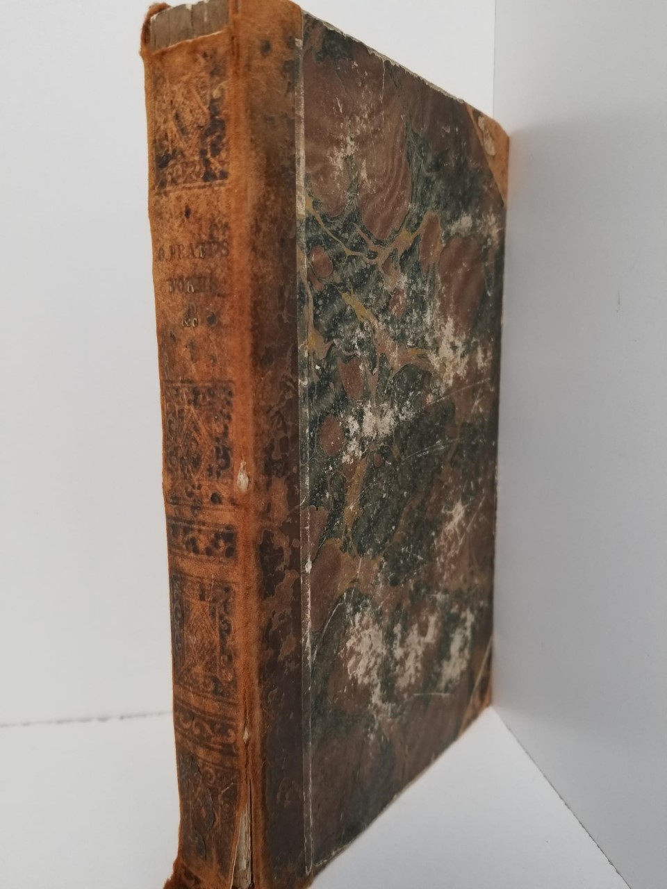 3/4 Leather / leather spine and corners of boards; faded and worn marbled paper boards.