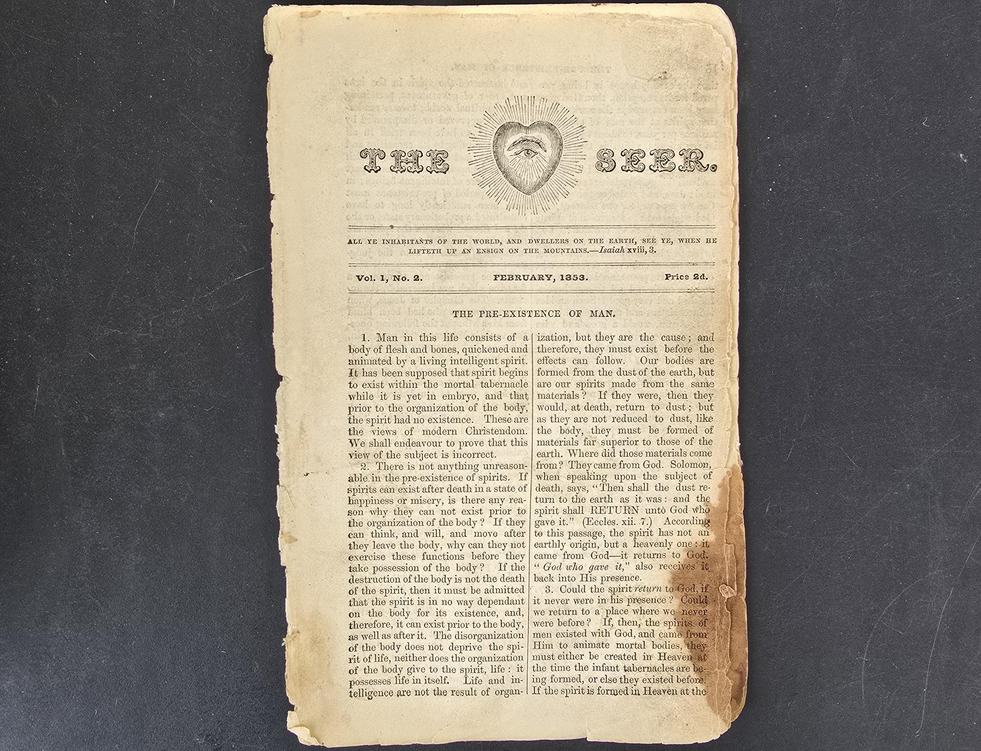 1853 — The Seer, Vol. 1. No. 2. — February 1853 — Orson Pratt — Single Issue — “Pre-Existence of Man” and “Celestial Marriage”