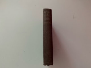 This is a brown hardbound and is in good condition. The top of the front cover is damaged along with the corners. The very first page is torn.