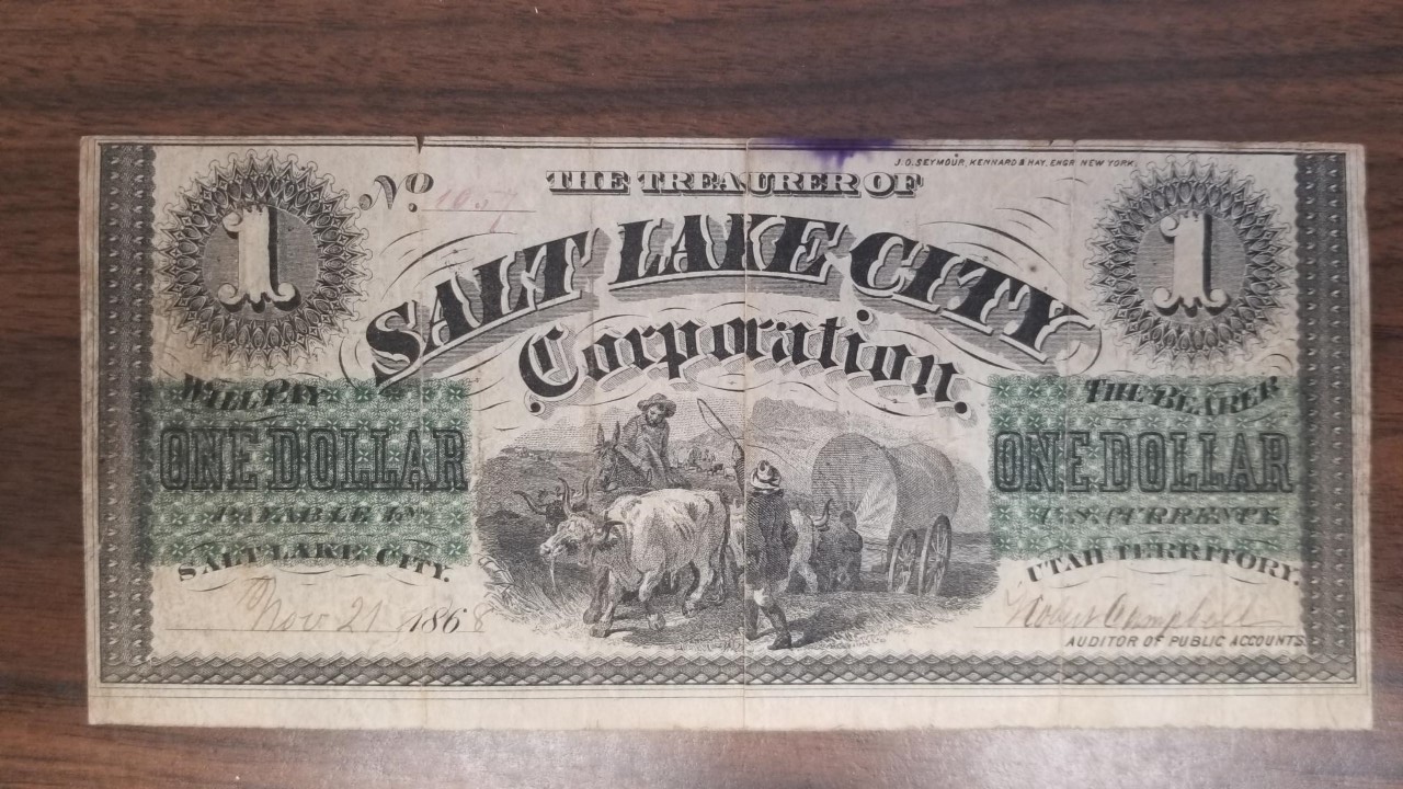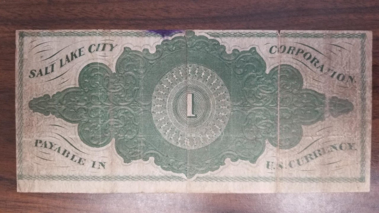 1868 — One Dollar Bill — Salt Lake City Corporation — Utah Territory — November 21, 1868 — “Payable in U.S. Currency”