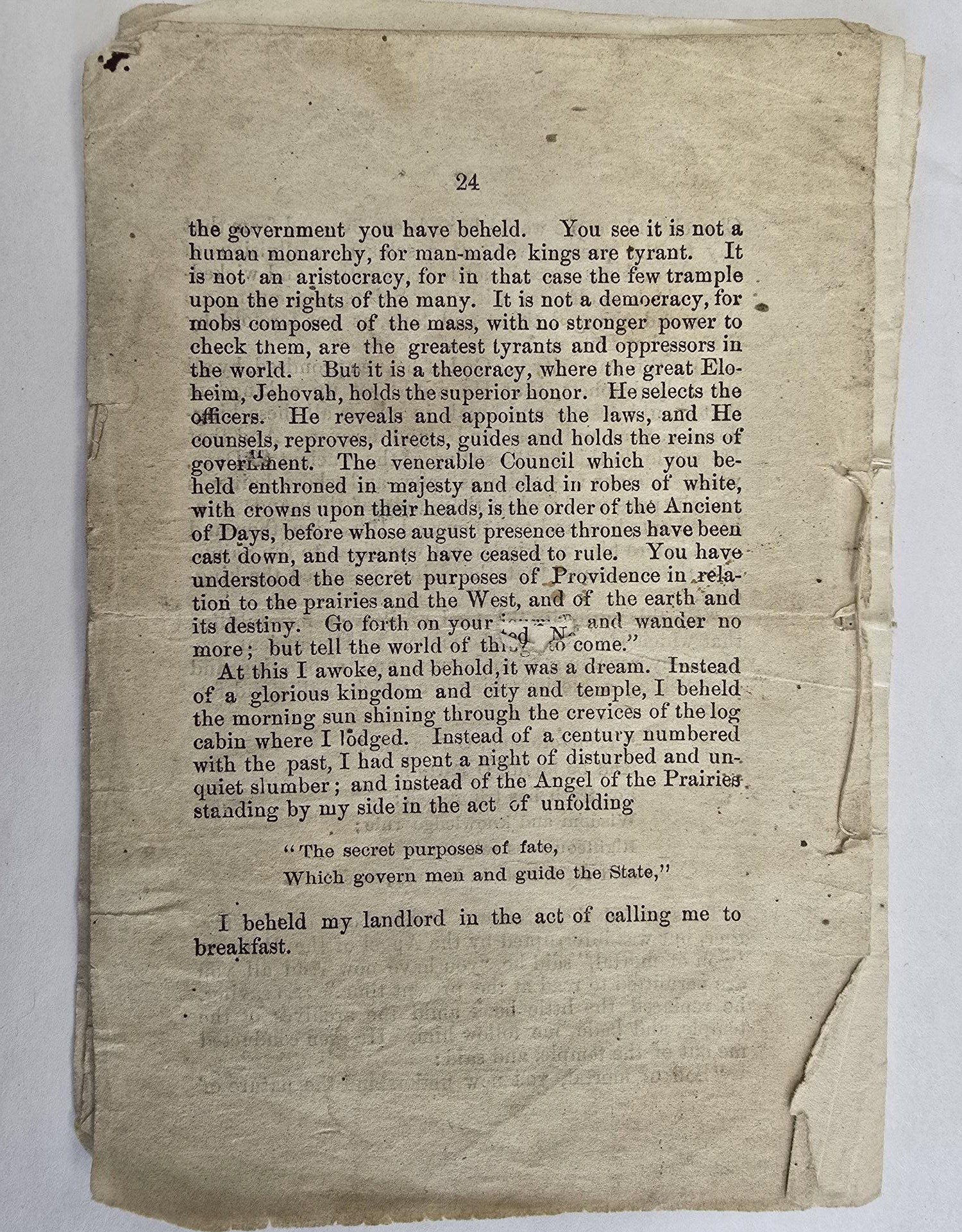 1880 — Angel of the Prairies — Parley P. Pratt — 24-Page Pamphlet (missing title page).