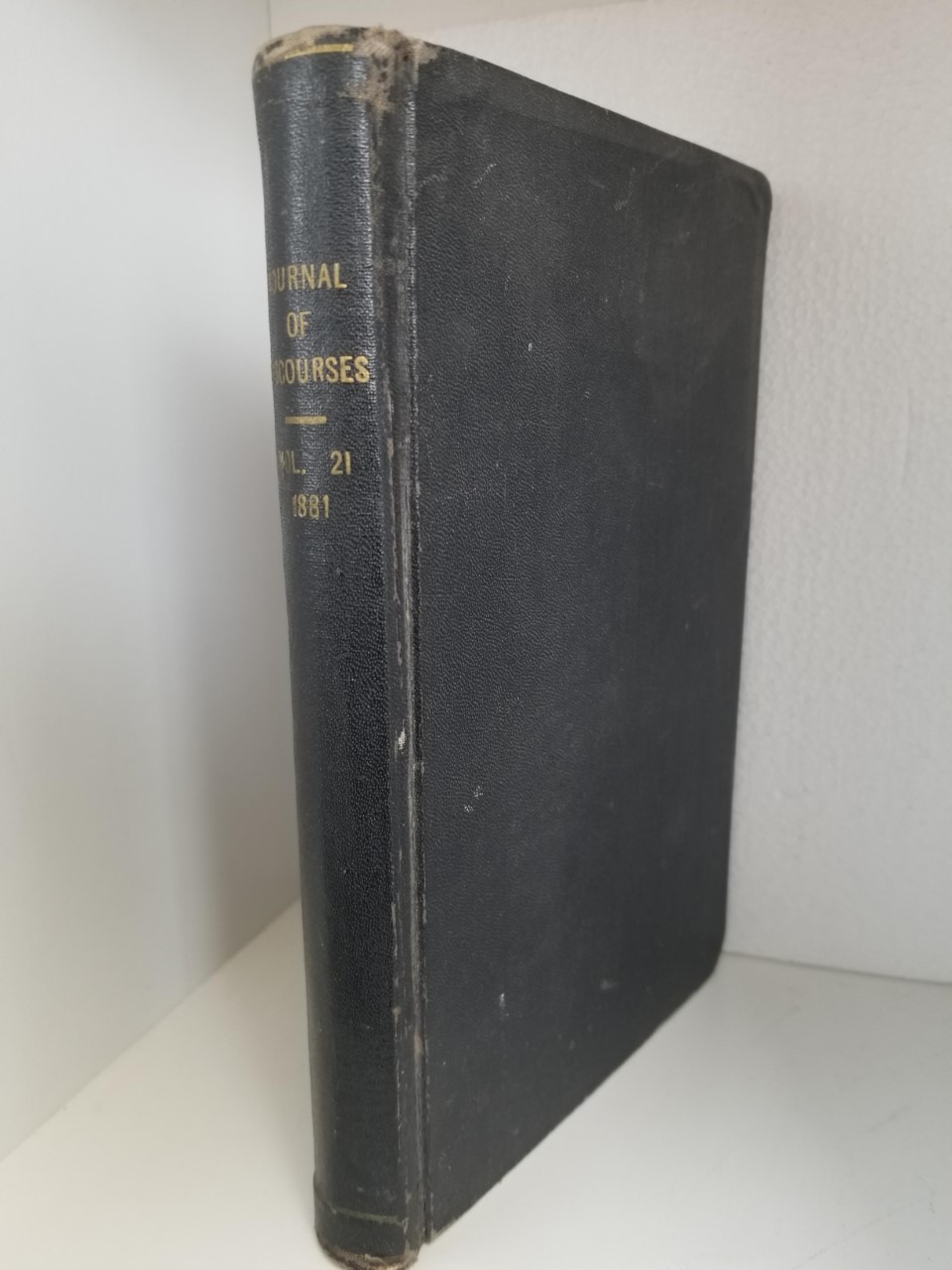 1881 Volume 21 of the 26 volume set; original printing; rebound nicely in black; binding is a bit worn but in tact; library stamp inside front cover; text clean except some pencil markings; staining across top of most pages.