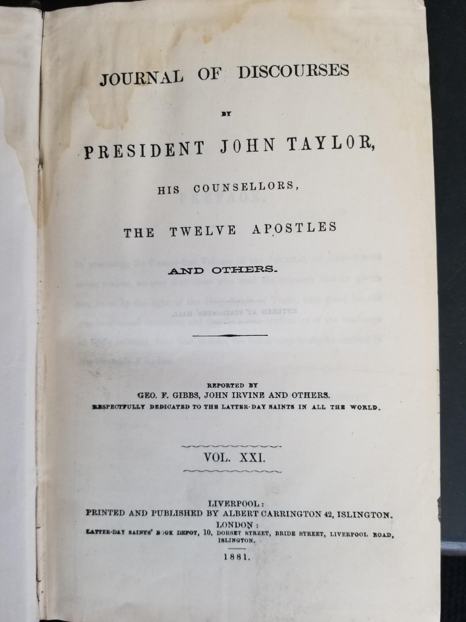 1881 — Journal of Discourses Volume 21 — Original First Edition but Rebound in Hardcover