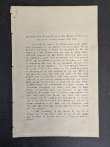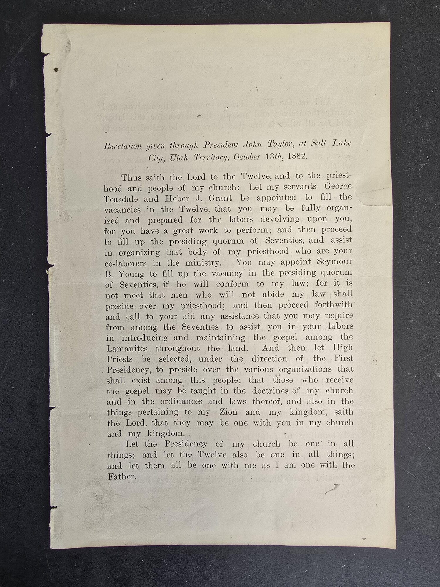 1882 — Revelation given through President John Taylor, at Salt Lake City, Utah Territory, October 13th, 1882