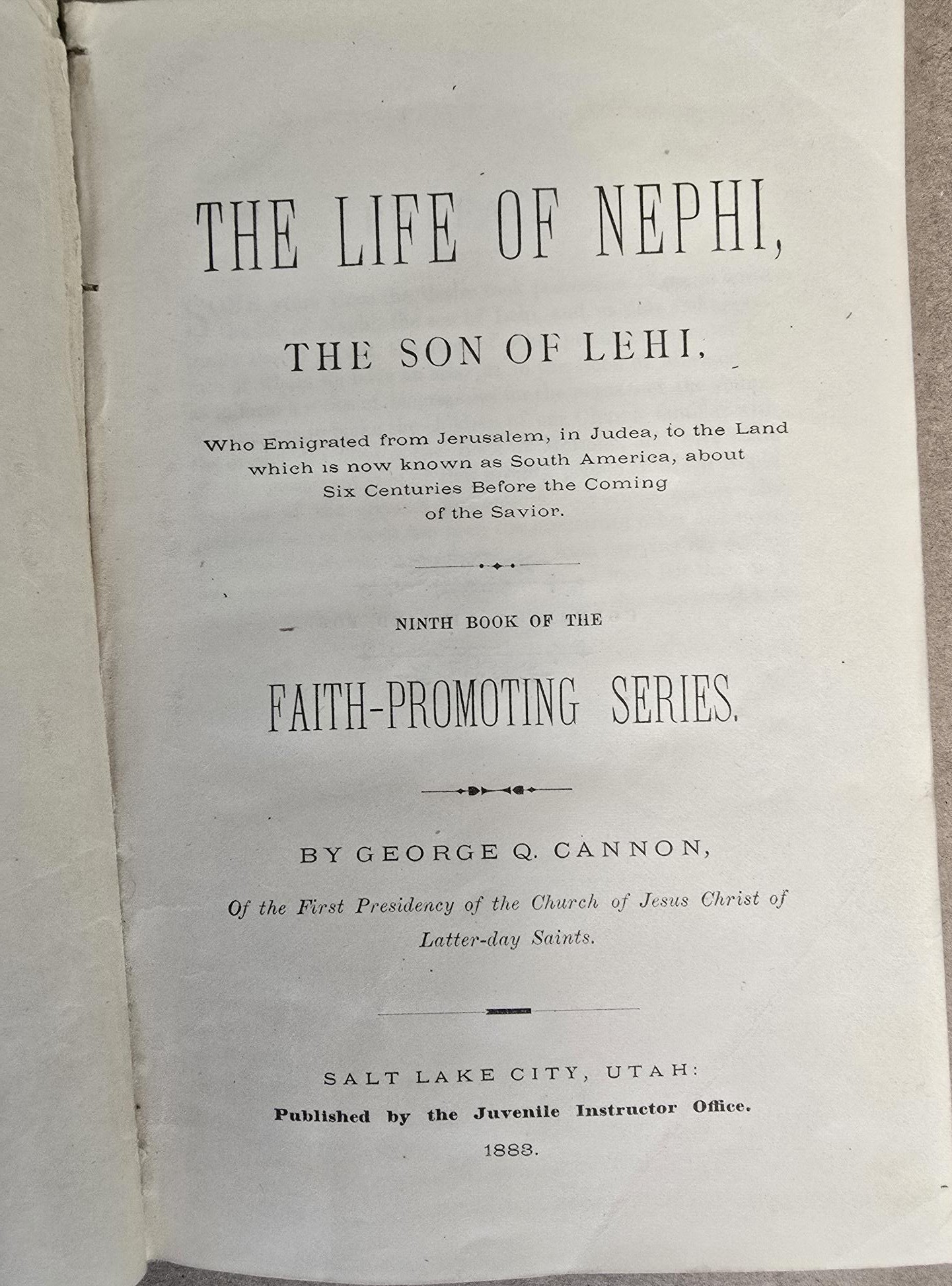 1883 — The Life of Nephi, the Son of Lehi — Ninth Book of the Faith-Promoting Series — George Q. Cannon