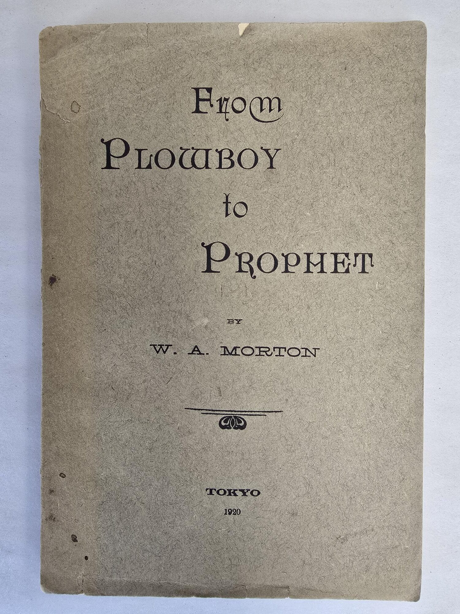 1920 — Rare Edition Printed in Tokyo, Japan — From Plowboy To Prophet — William A. Morton — Softbound