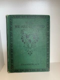 This book is a green hardbound and is in good condition. The spine has some damage to the top and the bottom. There are a few markings in the book. There is also a sticker in the back of the front cover.
