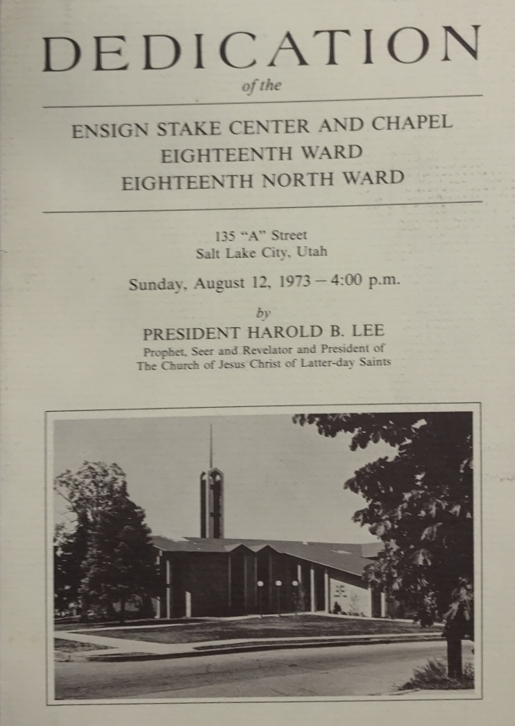 / 1973~Dedication of the Ensign Stake Center and Chapel Eighteenth Ward, Eighteenth North Ward~President Harold B. Lee