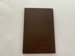 This is a brown hardbound and is in good condition. There are some scuffs on the edges of the book, the corners have also been scuffed. There is some writing on the cover page.