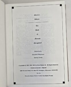 / 1992 — The Book of Mormon (Hungarian) Atforditotta Angolrol Magyarra Barany Istvan — Church of Jesus Christ of Latter-day Saints (Voree)