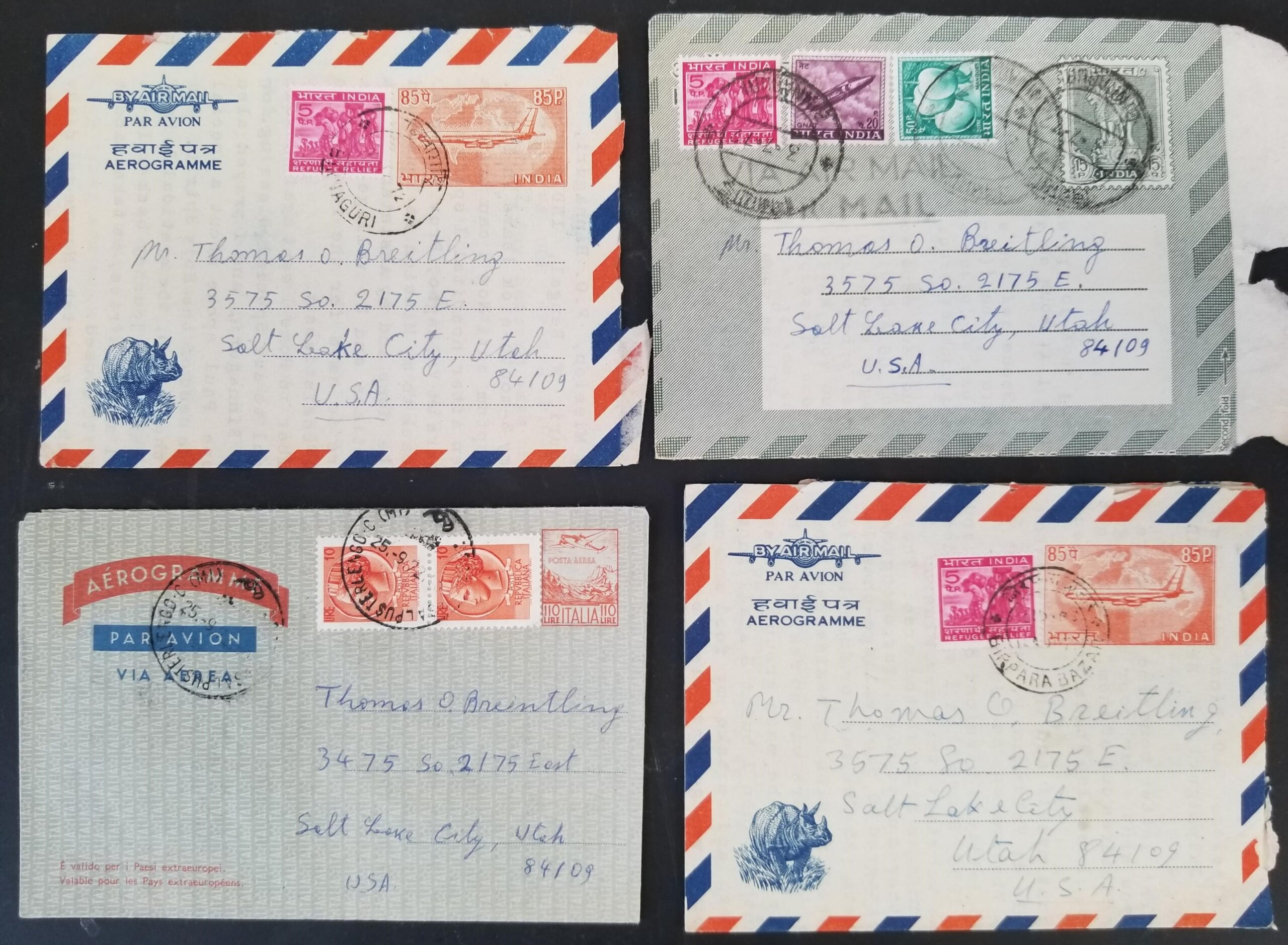 4 Letters/Envelopes from a Catholic Missionary in India / Sent to Salt Lake City, Utah