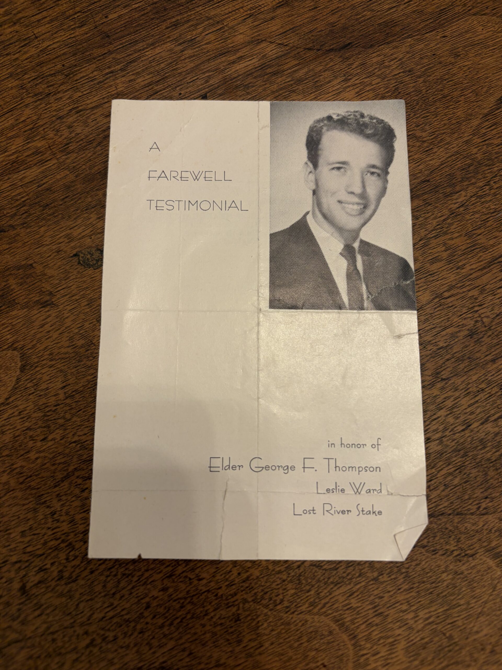 A Farewell Testimonial in honor of Elder George F. Thompson Leslie Ward – Sunday, January 1, 1961