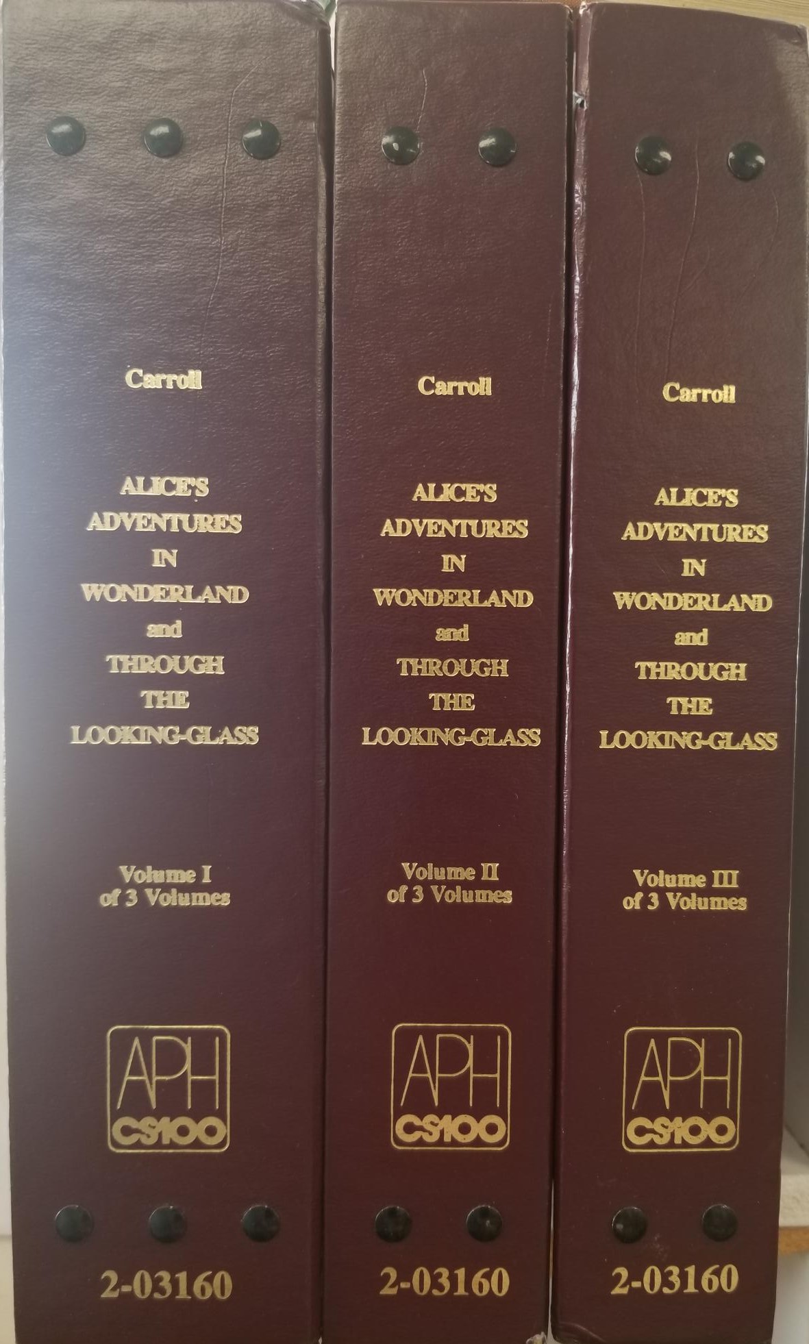 Alice’s Adventures in Wonderland and Through the Looking Glass — Lewis Carroll — 3 Vol. Set — in Braille