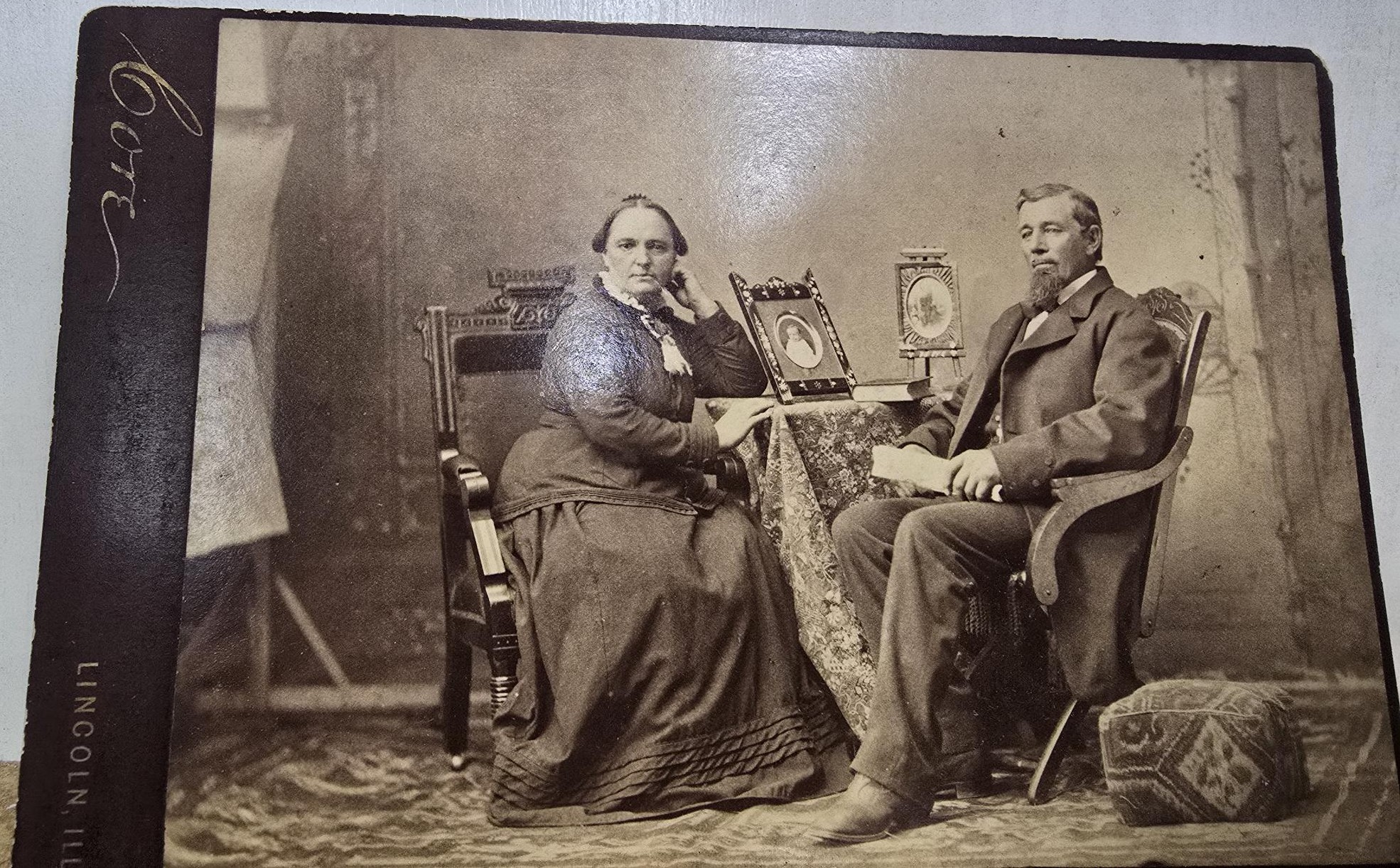 Cabinet Card Photograph — A Man & Woman — States: “Lincoln, Ill.”