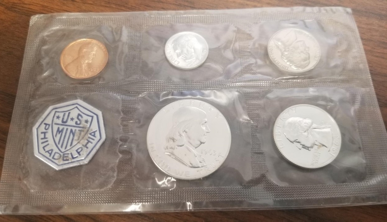 Coin Set in Plastic — 1963 Proof Set — Half Dollar, Quarter, Dime, Nickel, Penny