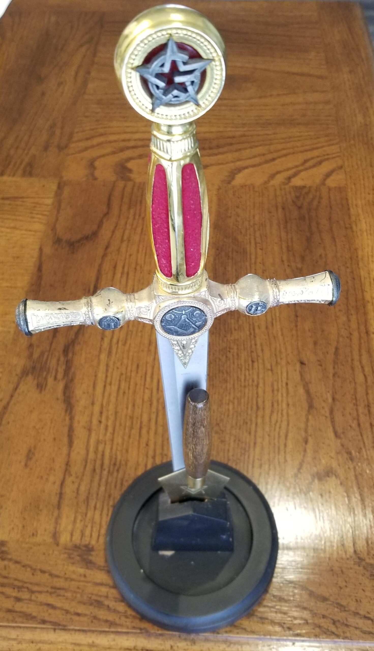/ Freemasonry Dagger & Trowel in Wood Stand