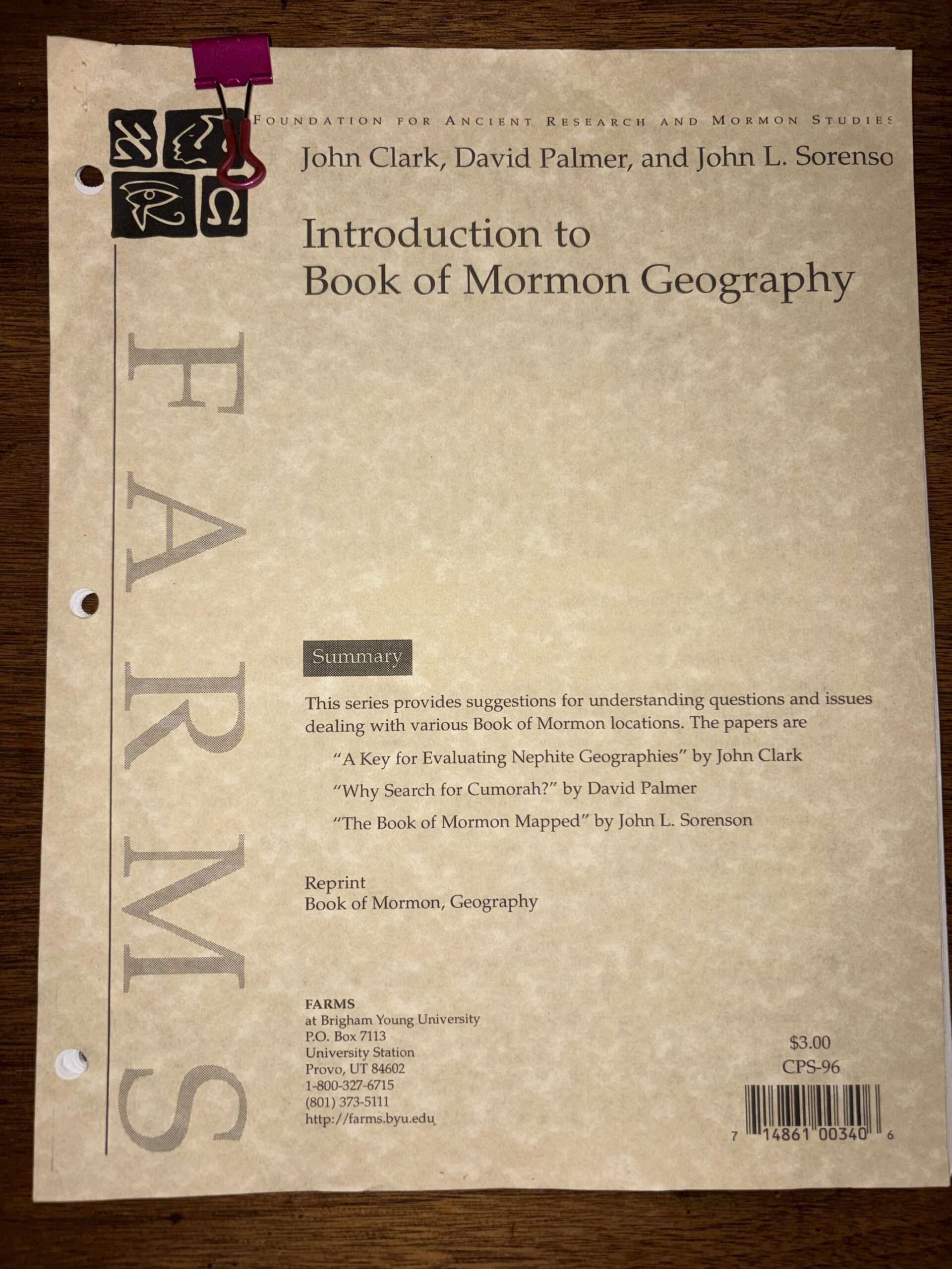 Introduction to Book of Mormon Geography Papercopy – John Clark, David Palmer, and John L. Sorenson