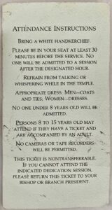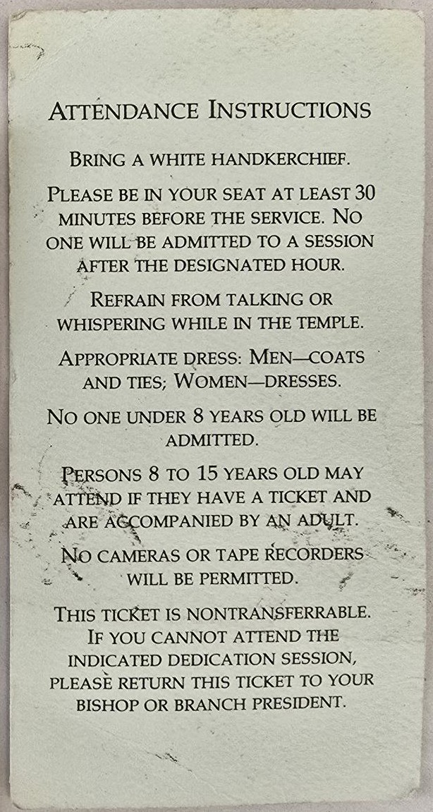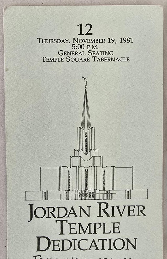 Jordan River LDS Temple Dedication Ticket — November 19, 1981