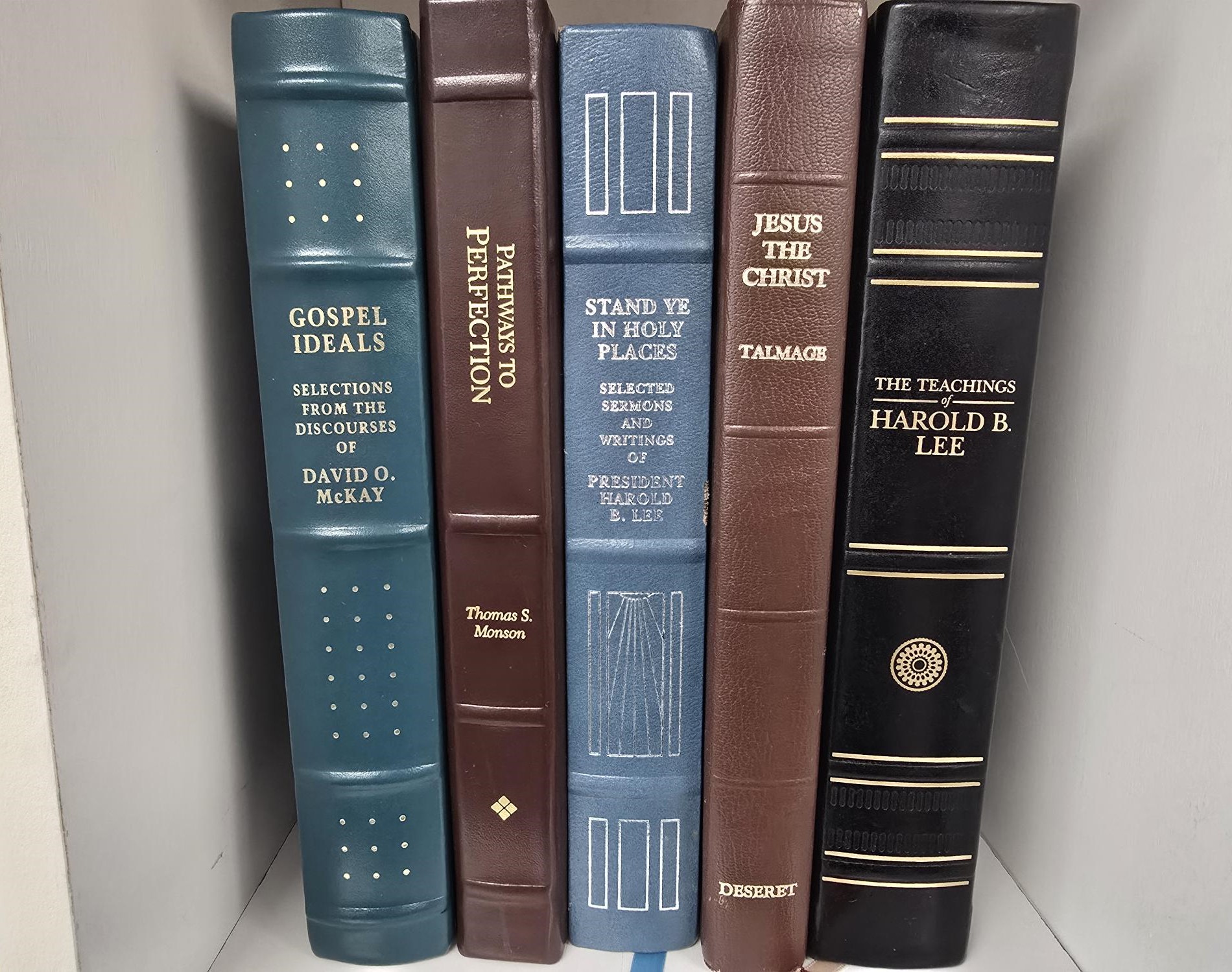 LDS Leatherbound Collection — 5 Leatherbound Book Bundle: Gospel Ideals, Pathways to Perfection, Stand Ye in Holy Places, Jesus the Christ, Teachings of Harold B. Lee