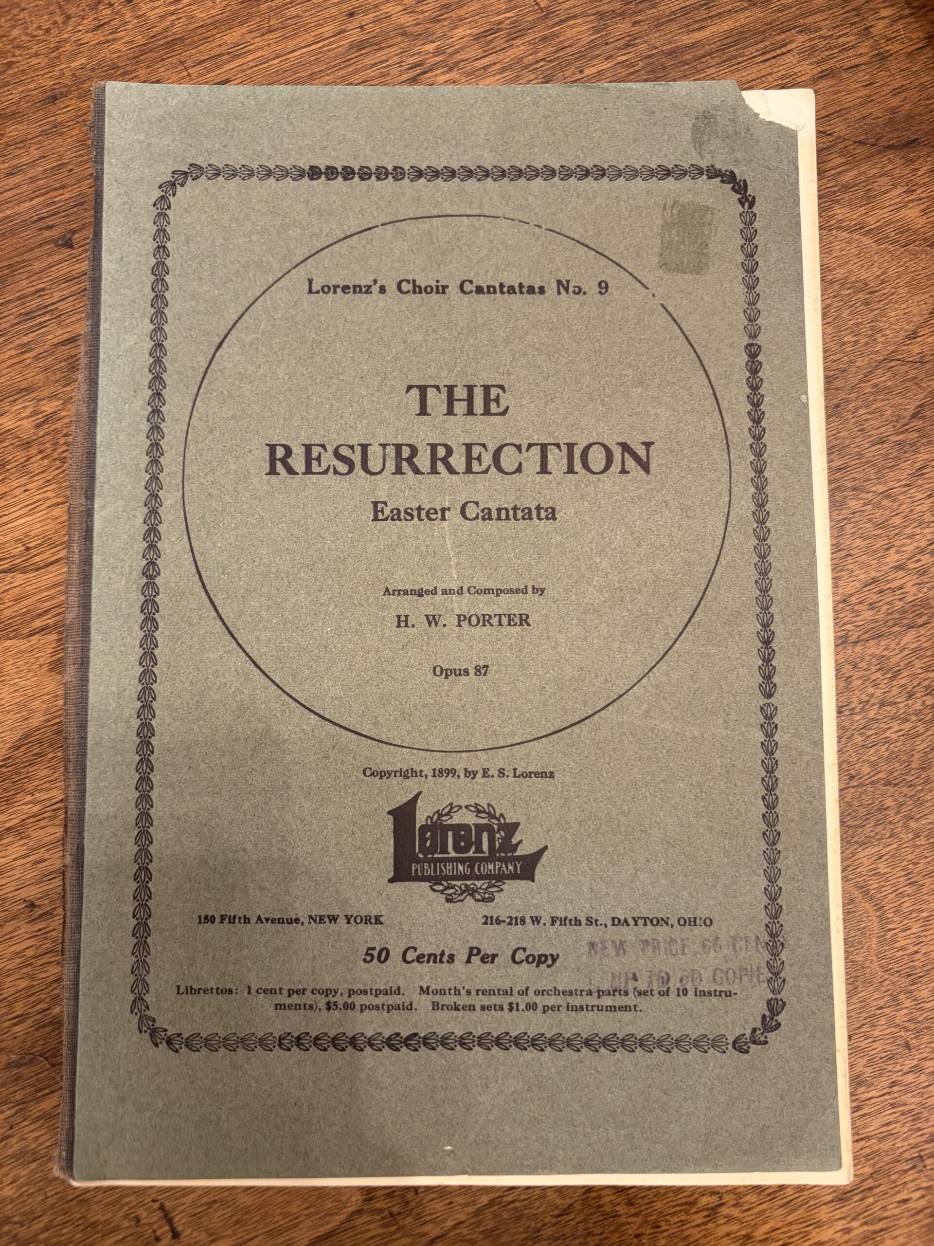 Lorenz's Choir Cantatas No. 9 The Resurrection: Easter Cantata - Arranged and Composed by H. W. Porter Opus 87 - 1899 quantity
