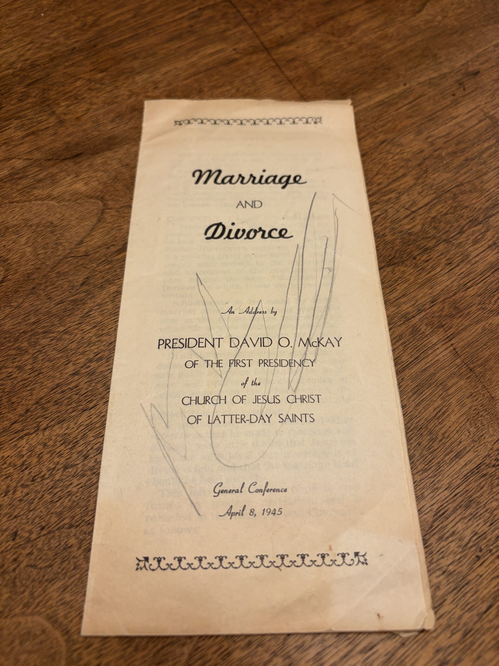 Marriage and Divorce – An Address by President David O. McKay Pamphlet – April 8, 1945