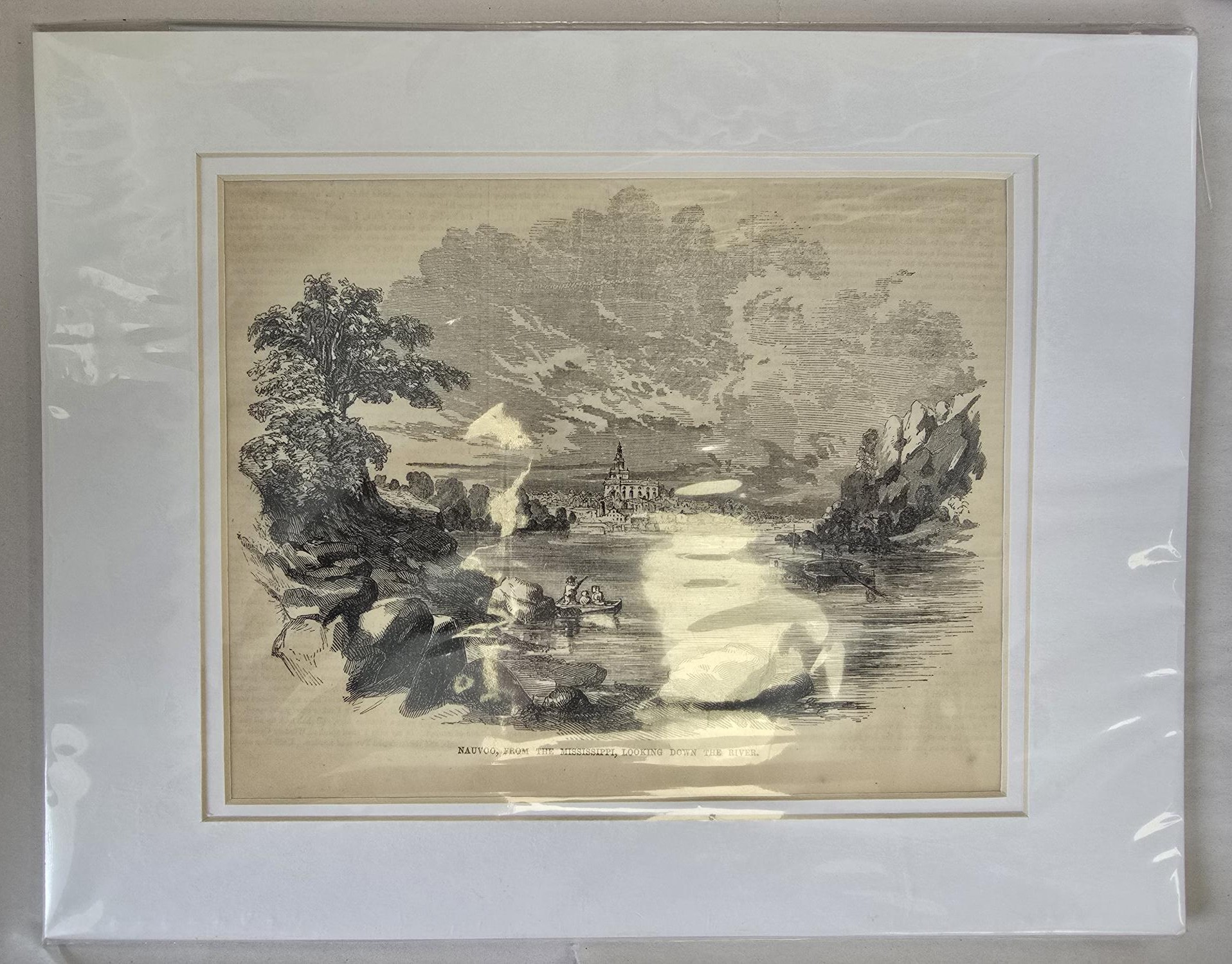 Old Print of Nauvoo & the Temple — Matted But Not Framed