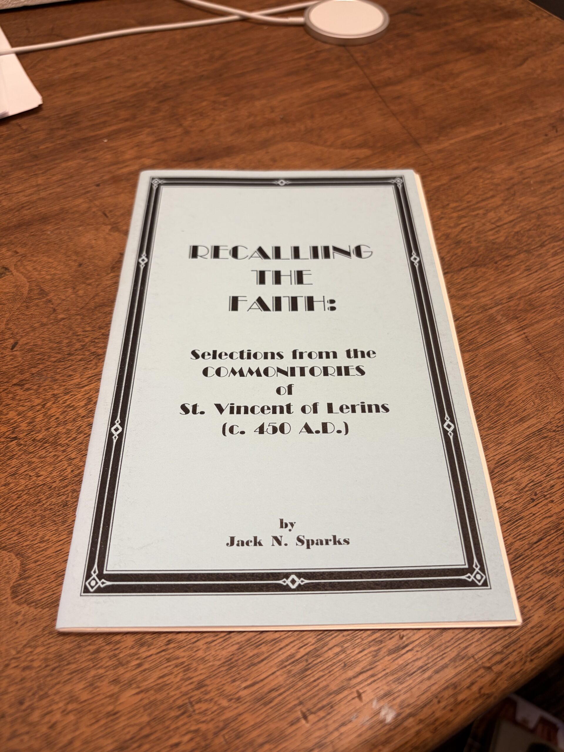 Recalling the Faith: Selections from the Commonitories of St. Vincent of Lerins (c. 450 A.D.) by Jack N. Sparks – 1995