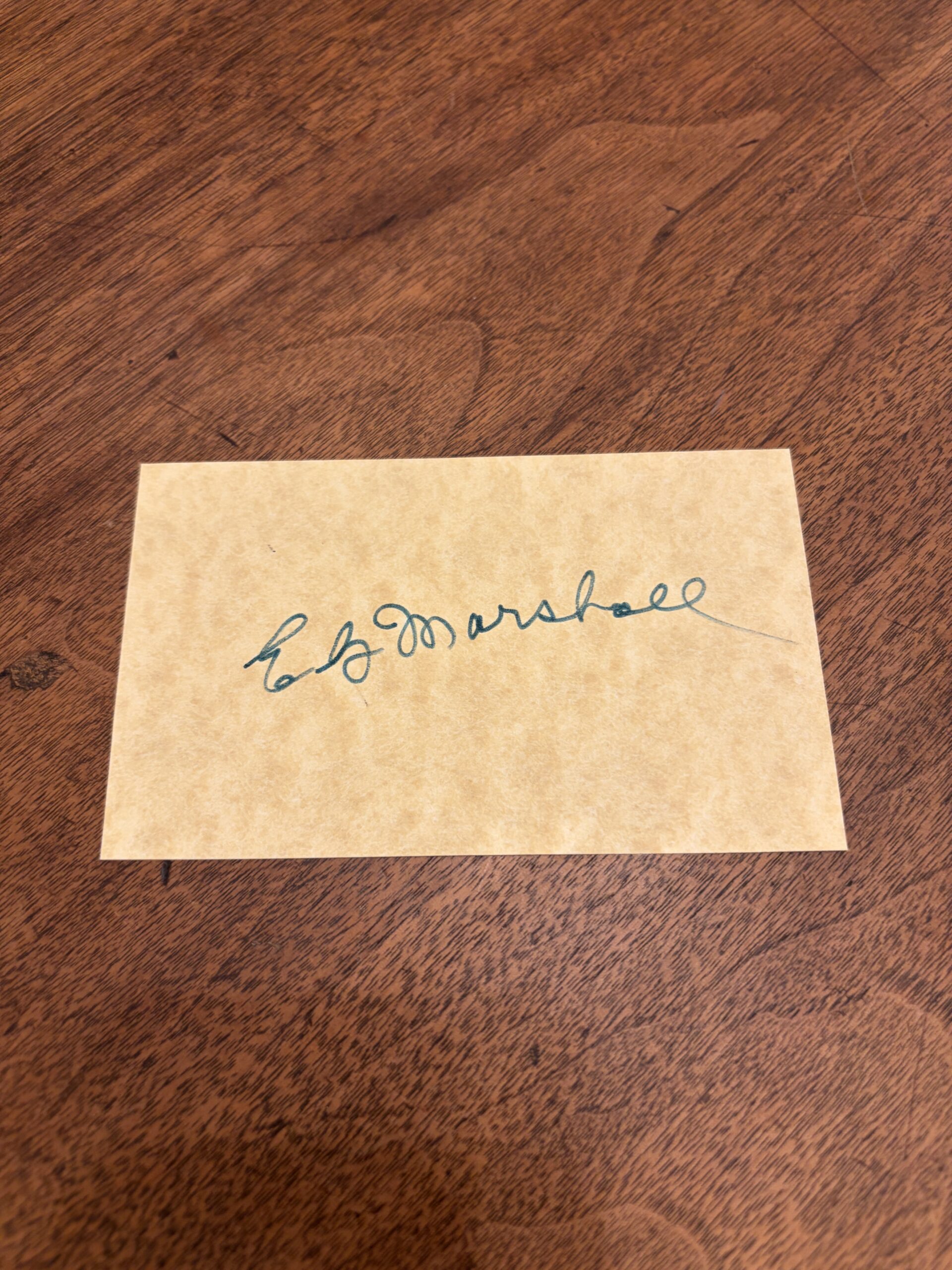 Signature of Actor E. G. Marshall on a Card