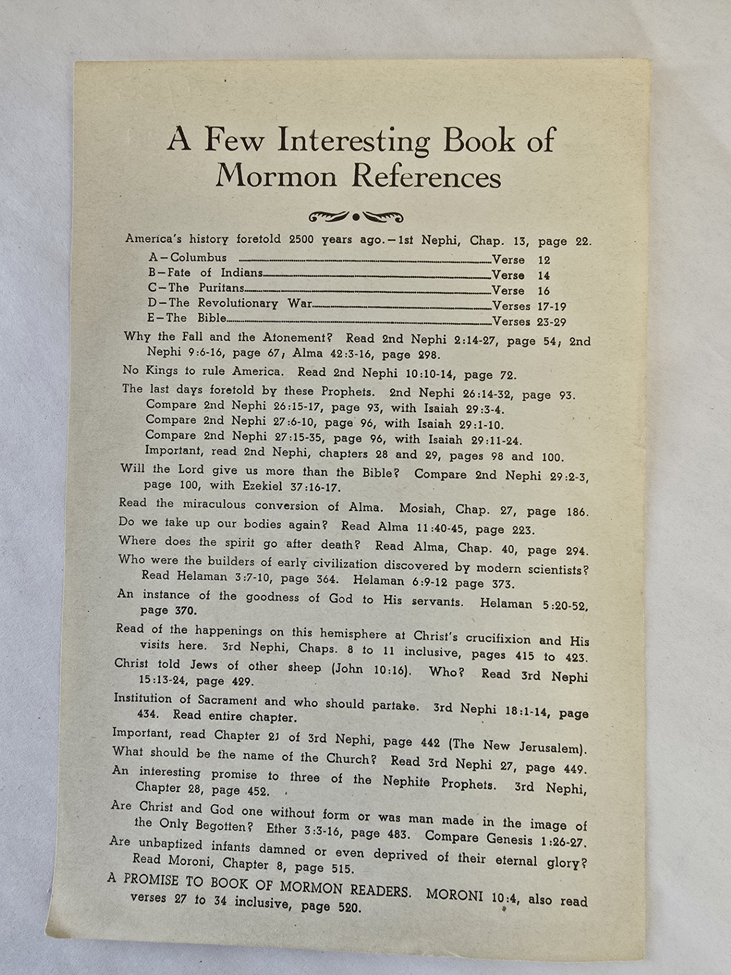 Single Sheet [Broadside] — A Few Interesting Book of Mormon References