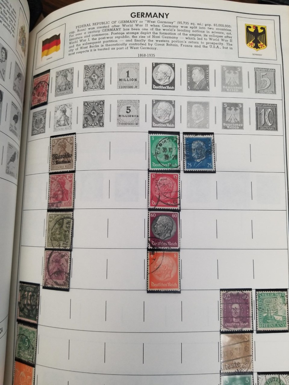 This stamp album is as pictured and has thousands of stamps inside. — H. E. Harris & Co., Inc.