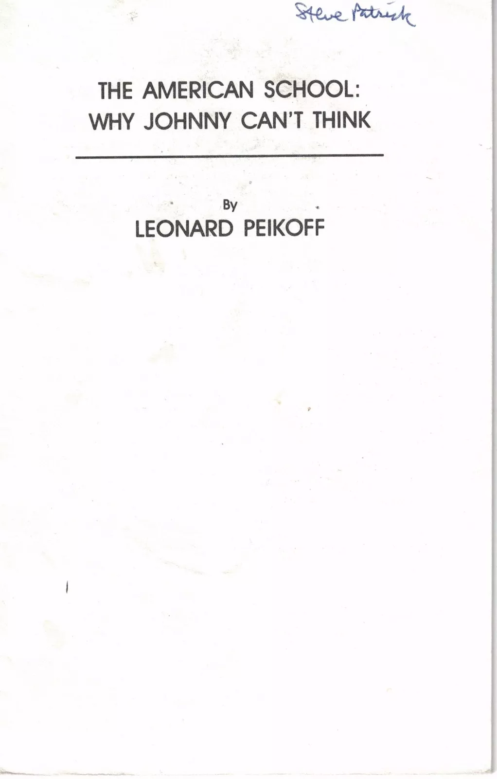 The American School: Why Johnny Can’t Think — Leonard Peikoff