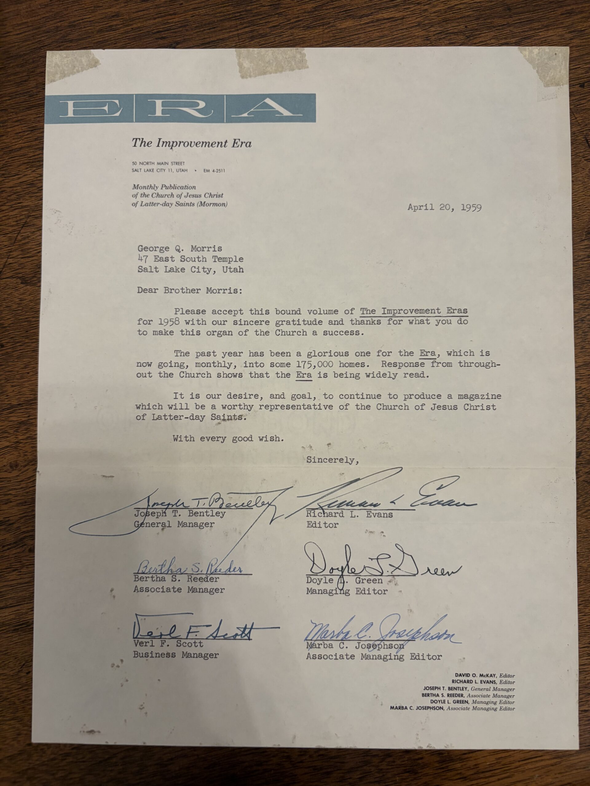 The Improvement Era Signed Letter – April 20, 1959