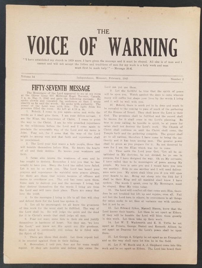 The Voice of Warning, Volume 14, Number 2, February 1943 — [Church of Christ – Independence, Mo.] — Single Issue