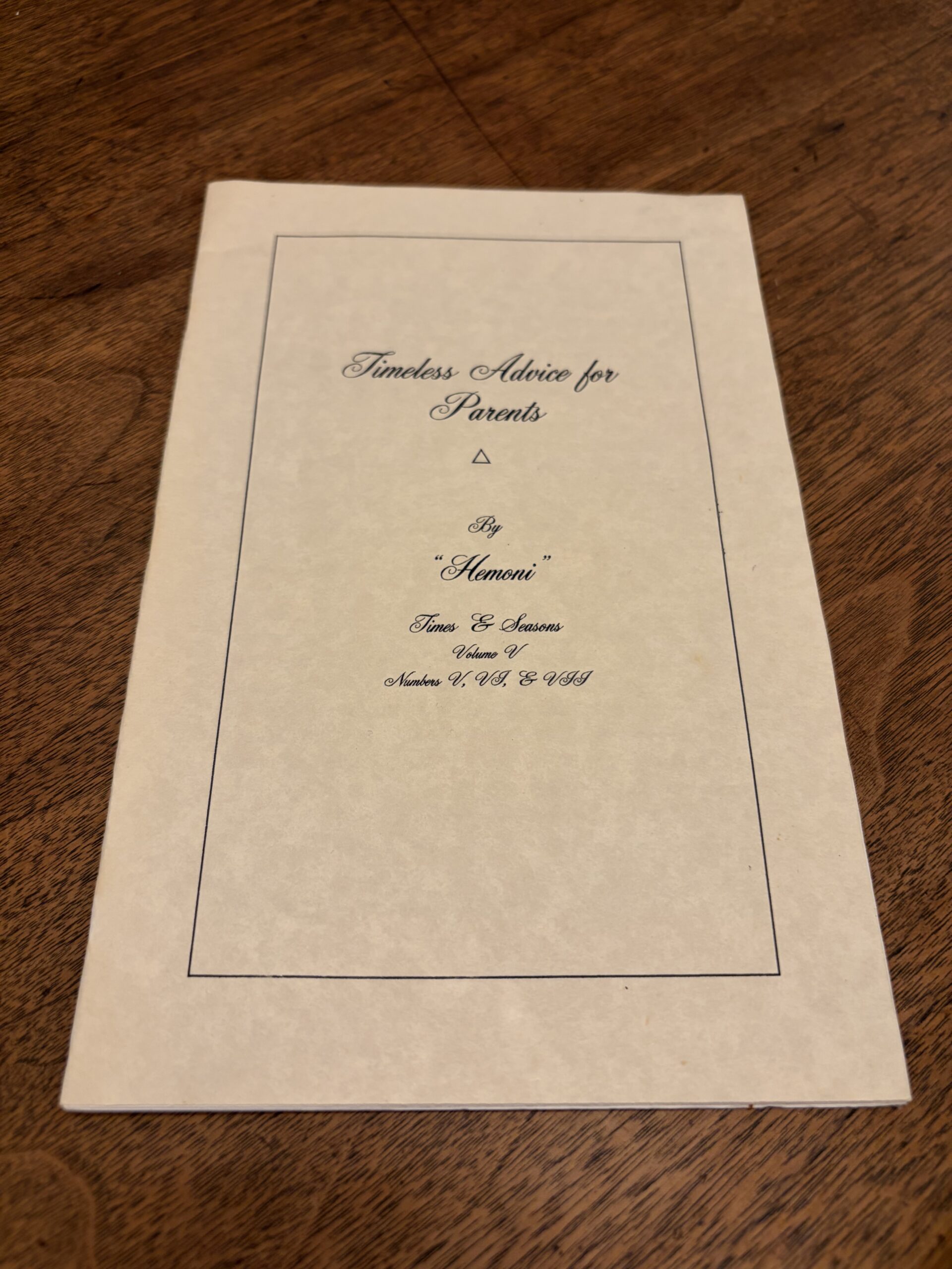Timeless Advice for Parents Pamphlet by “Hemoni”
