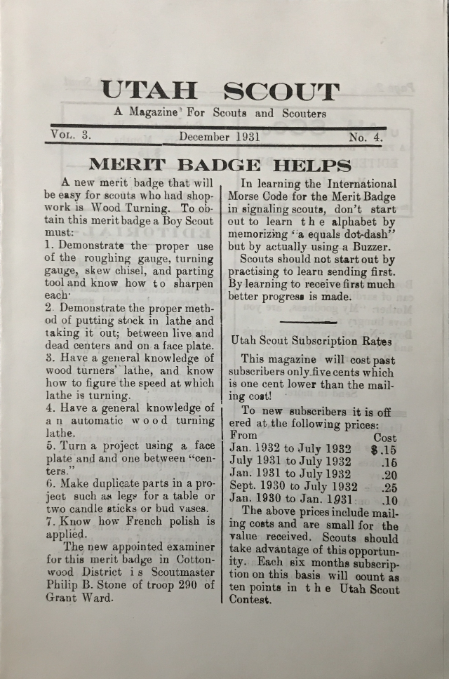 1931 ~ Utah Scout ~ December, Vol. 3, No. 4