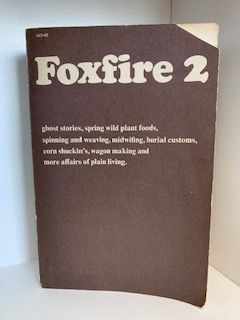 This is a brown paperback with white lettering. The top of the front cover has a tear. The bottom of the spine has some shelfware. Both covers have some small scratches. The outside of the pages has some dirt marks.
