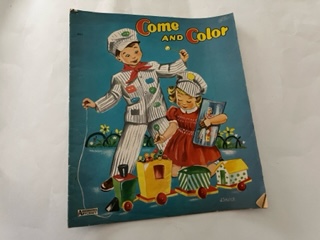 This is a coloring book and is in good condition. The bottom corners have been slightly damaged. The dust jacket is slightly damaged.Some of the pages have been colored in.