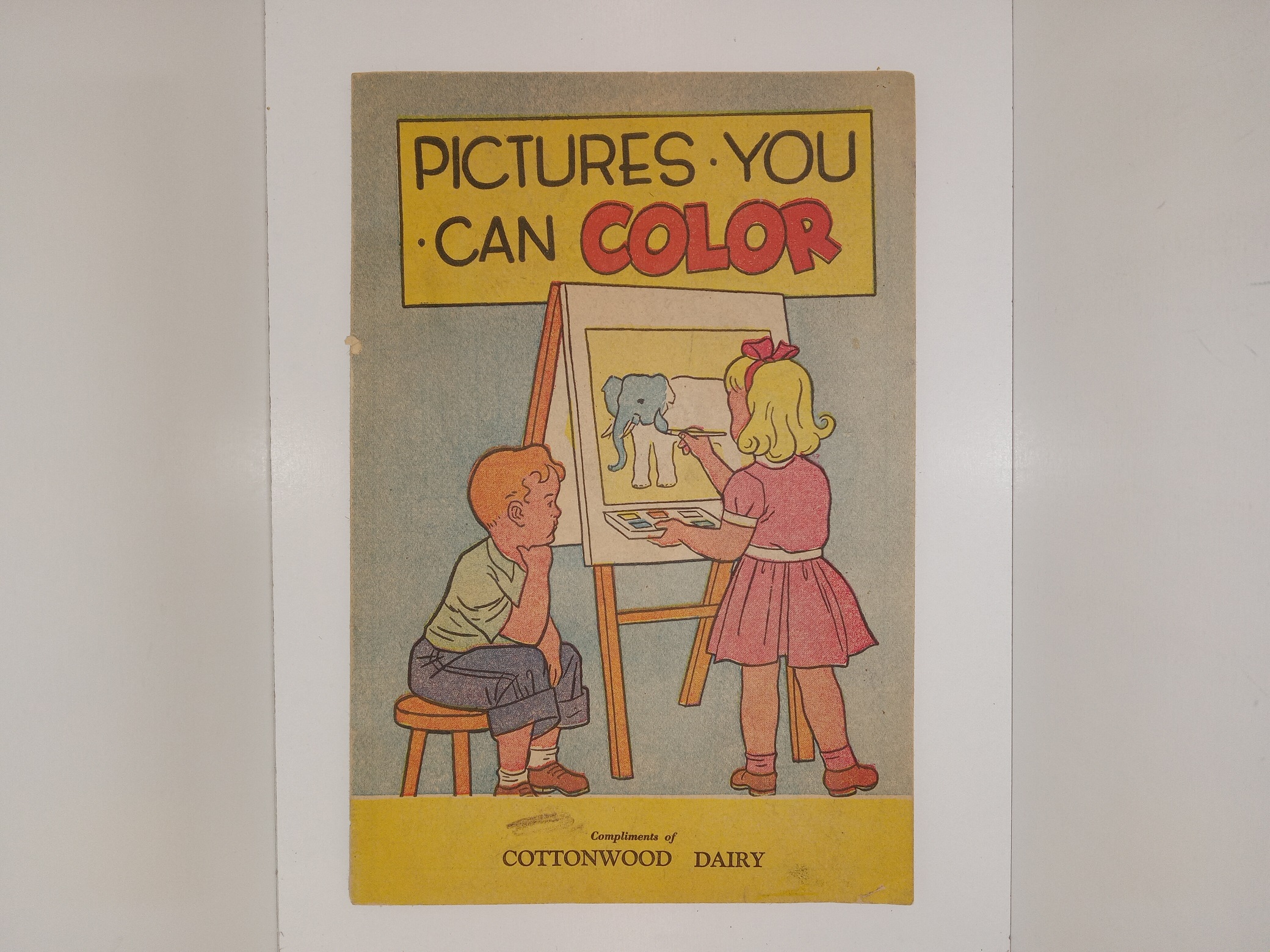Fair condition, thin, staple-bound softcover. The cover has some small pieces torn off, some tears, creases, wrinkling, and stains. Some pages have stains. Two of the pages have been colored in with crayon, and another two have crayon scribbles in the margins. The second page also has some writing in pencil in the top margin.